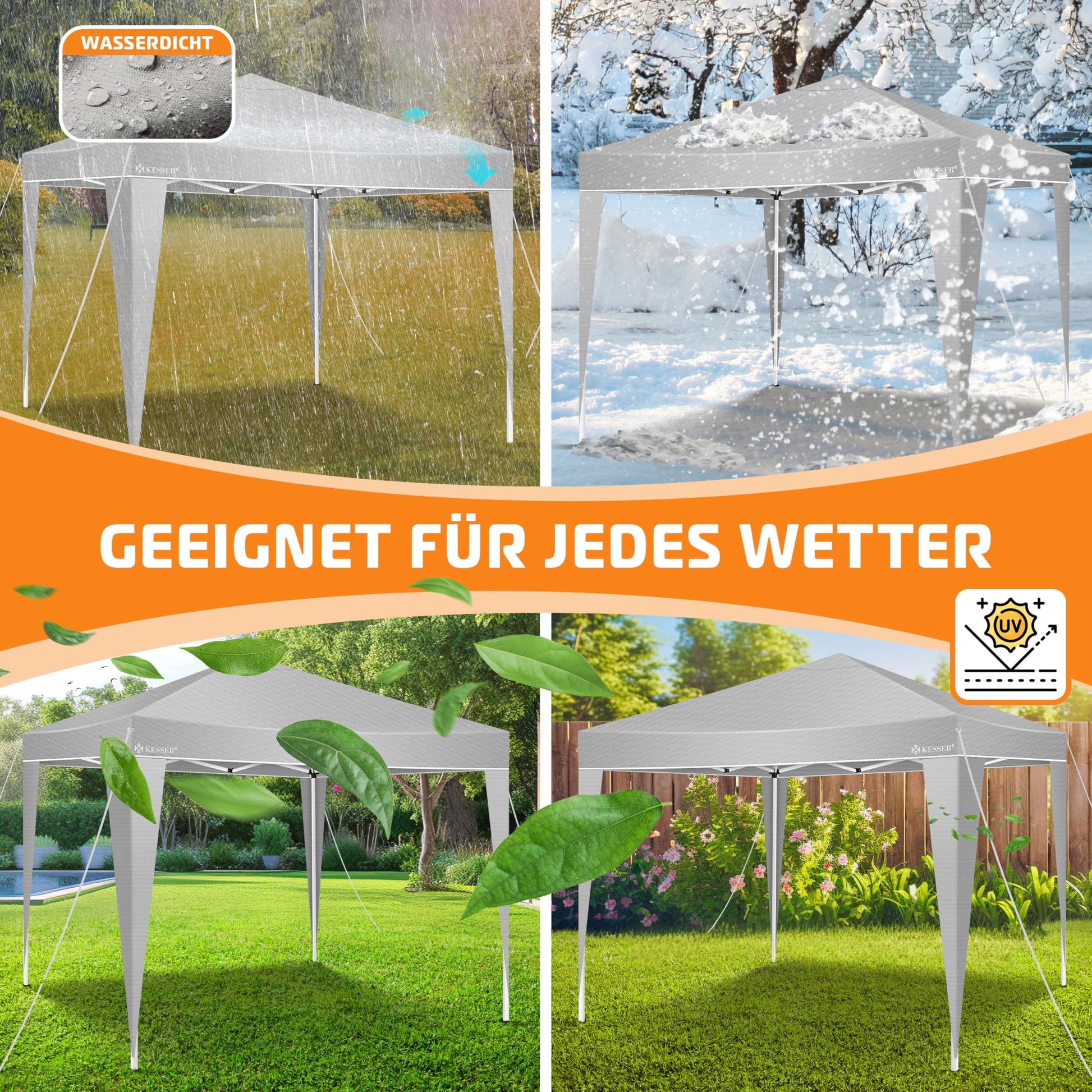 Dieser Faltpavillon von KESSER ist der ideale Begleiter für alle Ihre Anlässe im Freien. Er kombiniert einen blitzschnellen Aufbau mit zuverlässigem Schutz vor Sonne und einem unerwarteten Regenschauer.