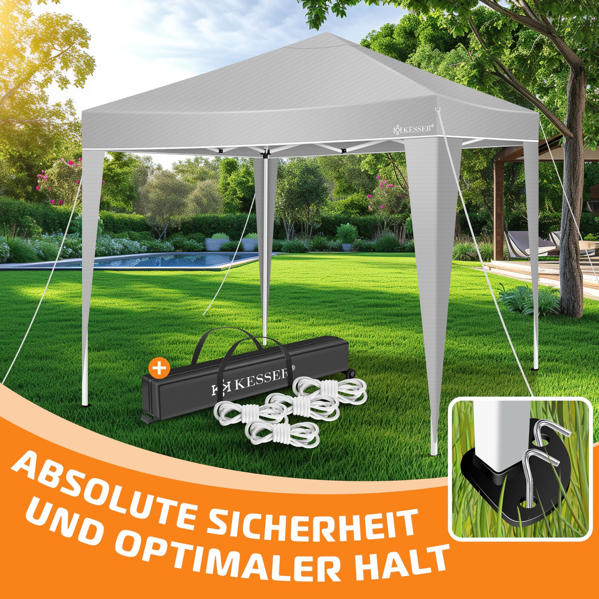 - Komplettes Zubehör: Das Set beinhaltet Bodenanker und Spannschnüre zur zusätzlichen Sicherung des Pavillons bei Wind.