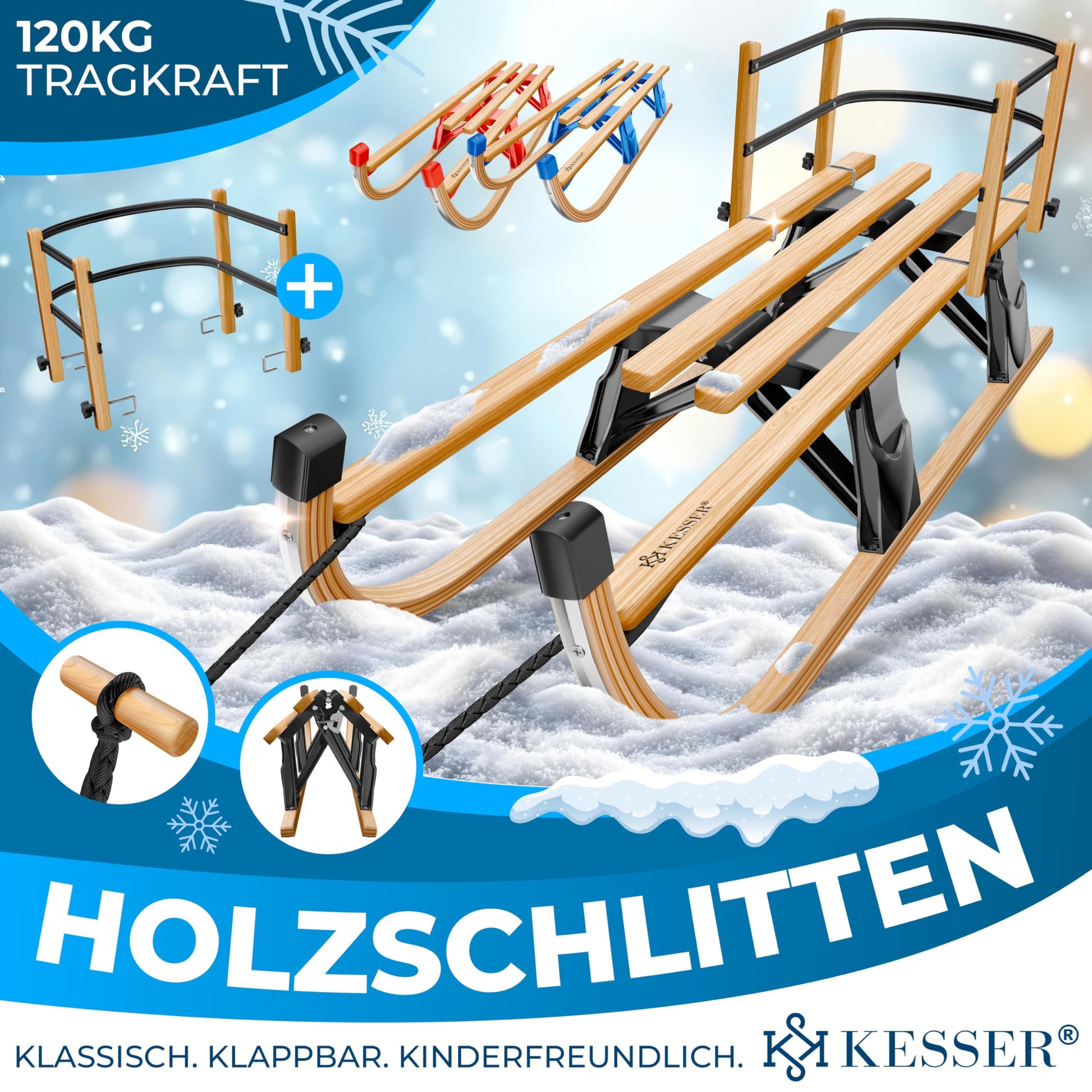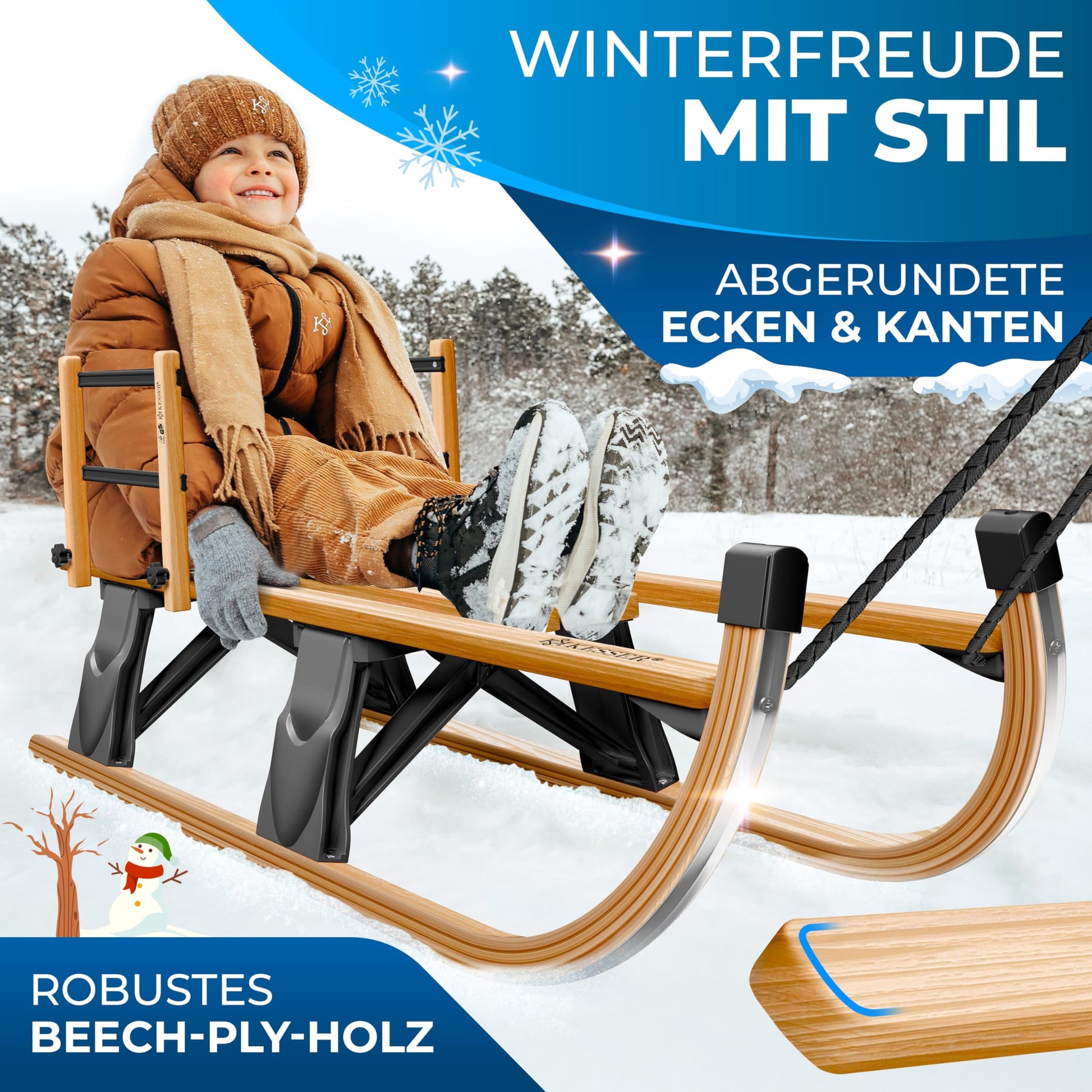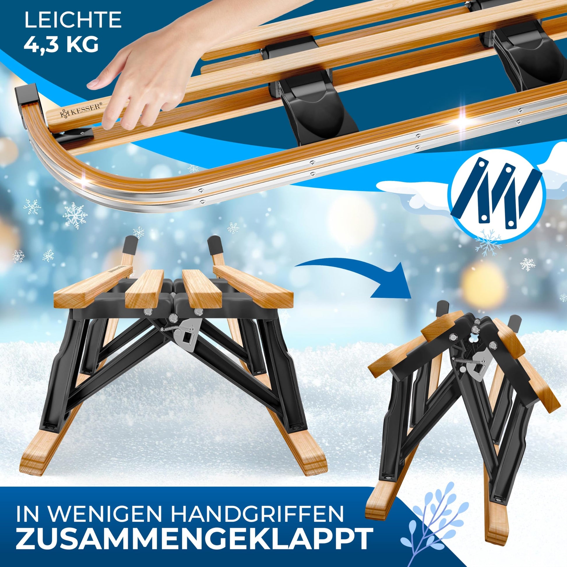 KESSER Holzschlitten Davoser Klappbar 110 cm – Buche/Schwarz