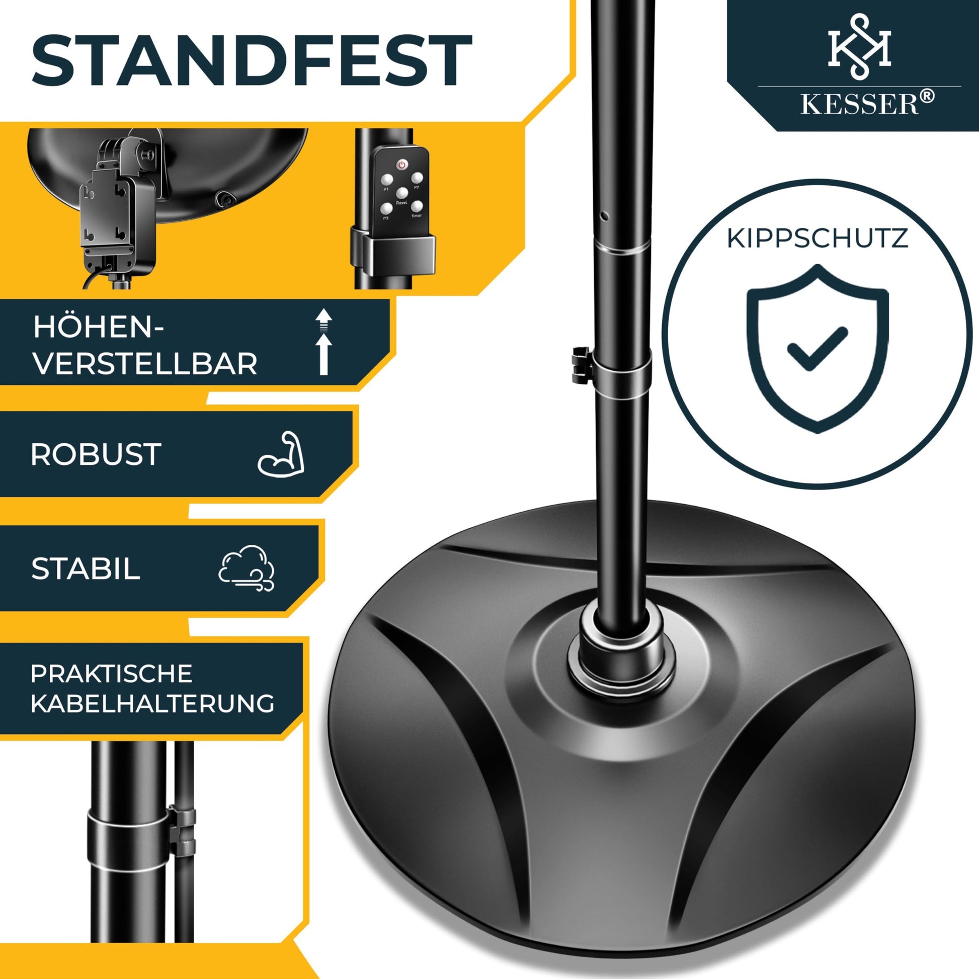 - Flexible Ausrichtung: Der Teleskopständer ist von 120 cm bis 210 cm in der Höhe verstellbar und der Heizkopf lässt sich um 45 Grad neigen.