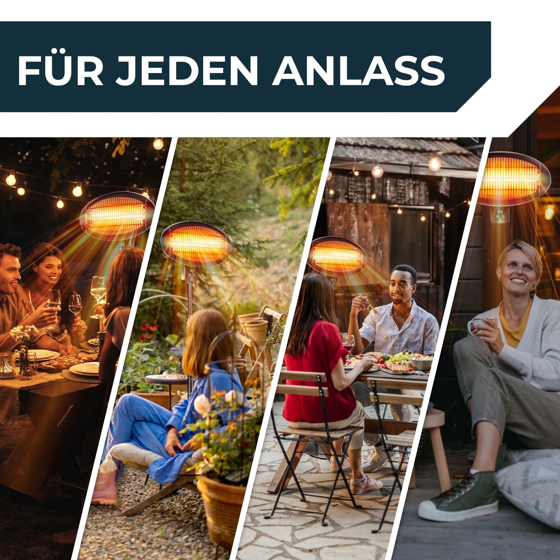 - Für Innen & Aussen: Dank IPX4-Spritzwasserschutz ist der Heizstrahler für den geschützten Aussenbereich und alle Innenräume geeignet.