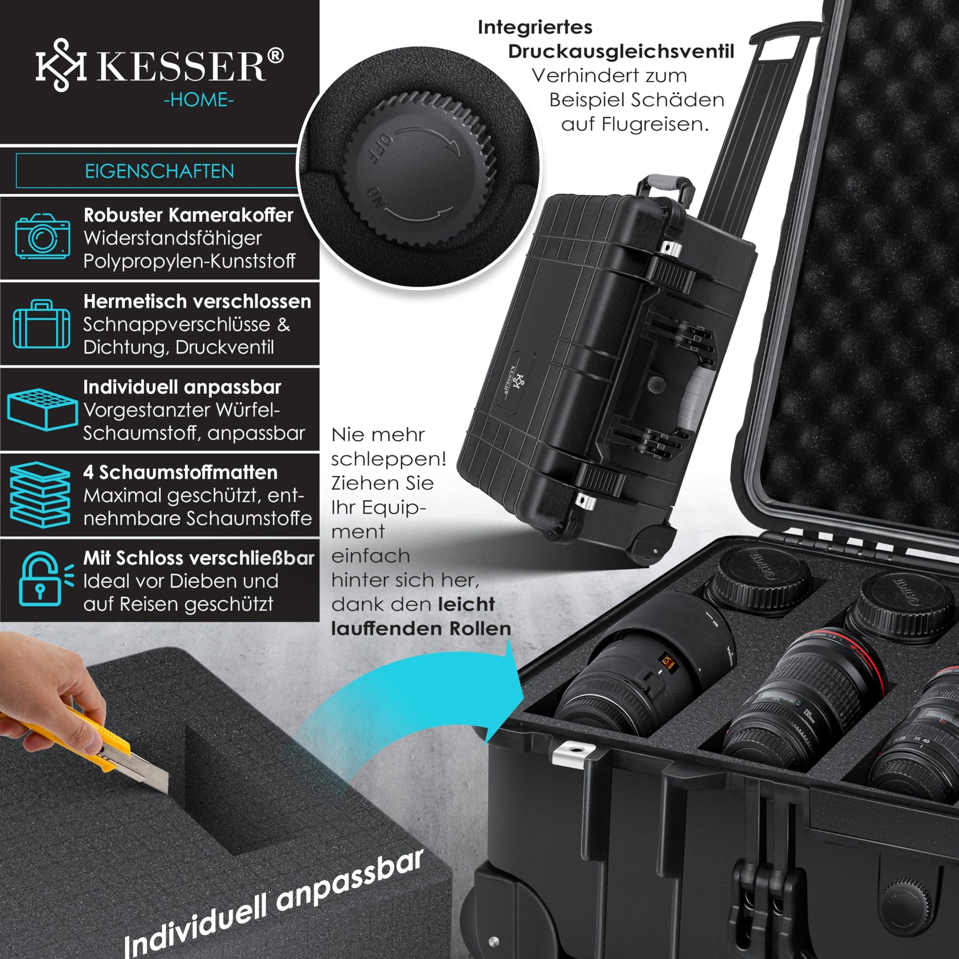 KESSER Hartschalen Trolley mit Schaumstoff – 46L Schwarz