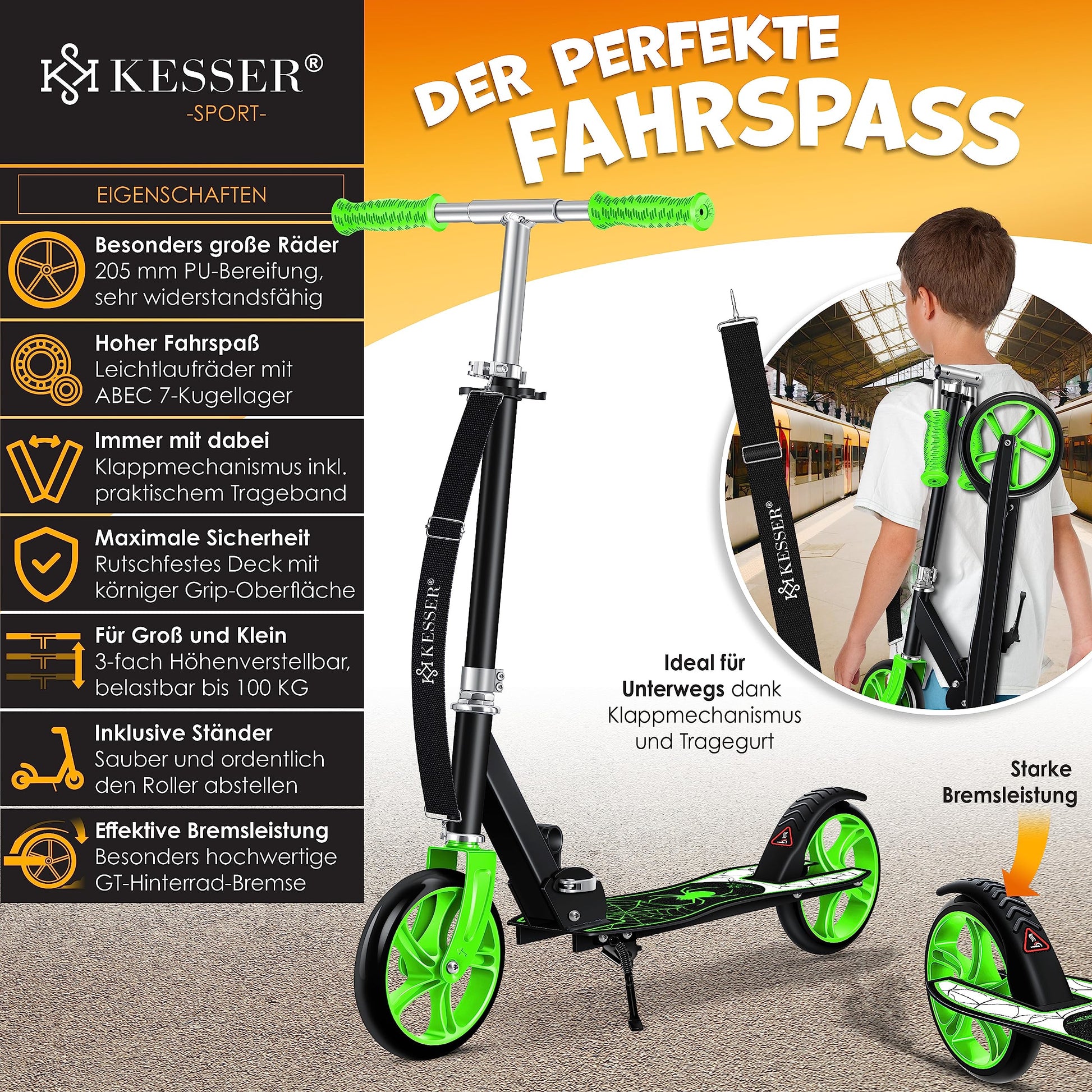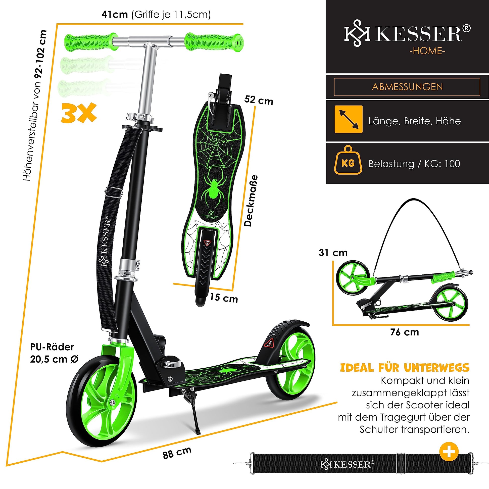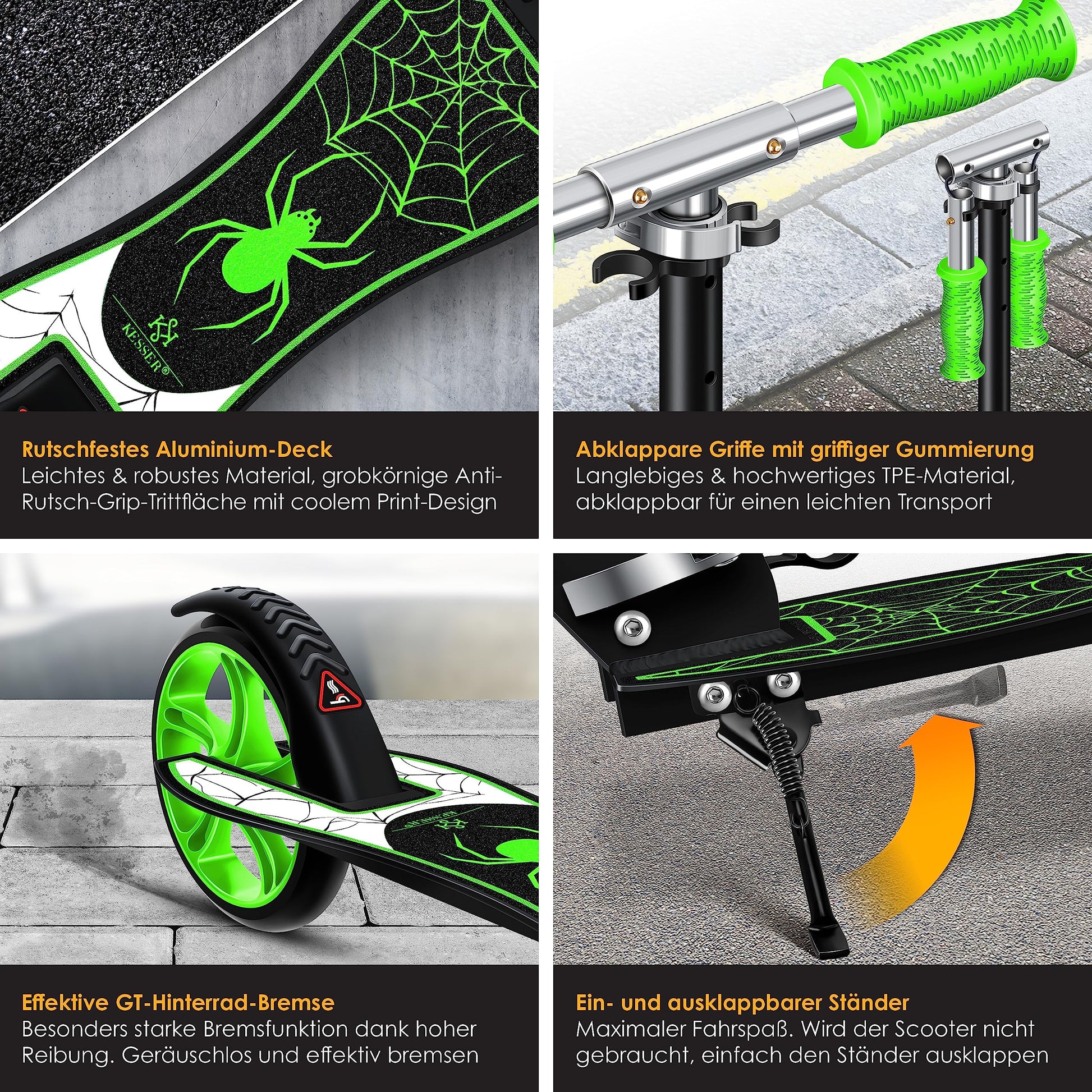 KESSER® Spider Kickscooter Klappbar Höhenverstellbar - Grün