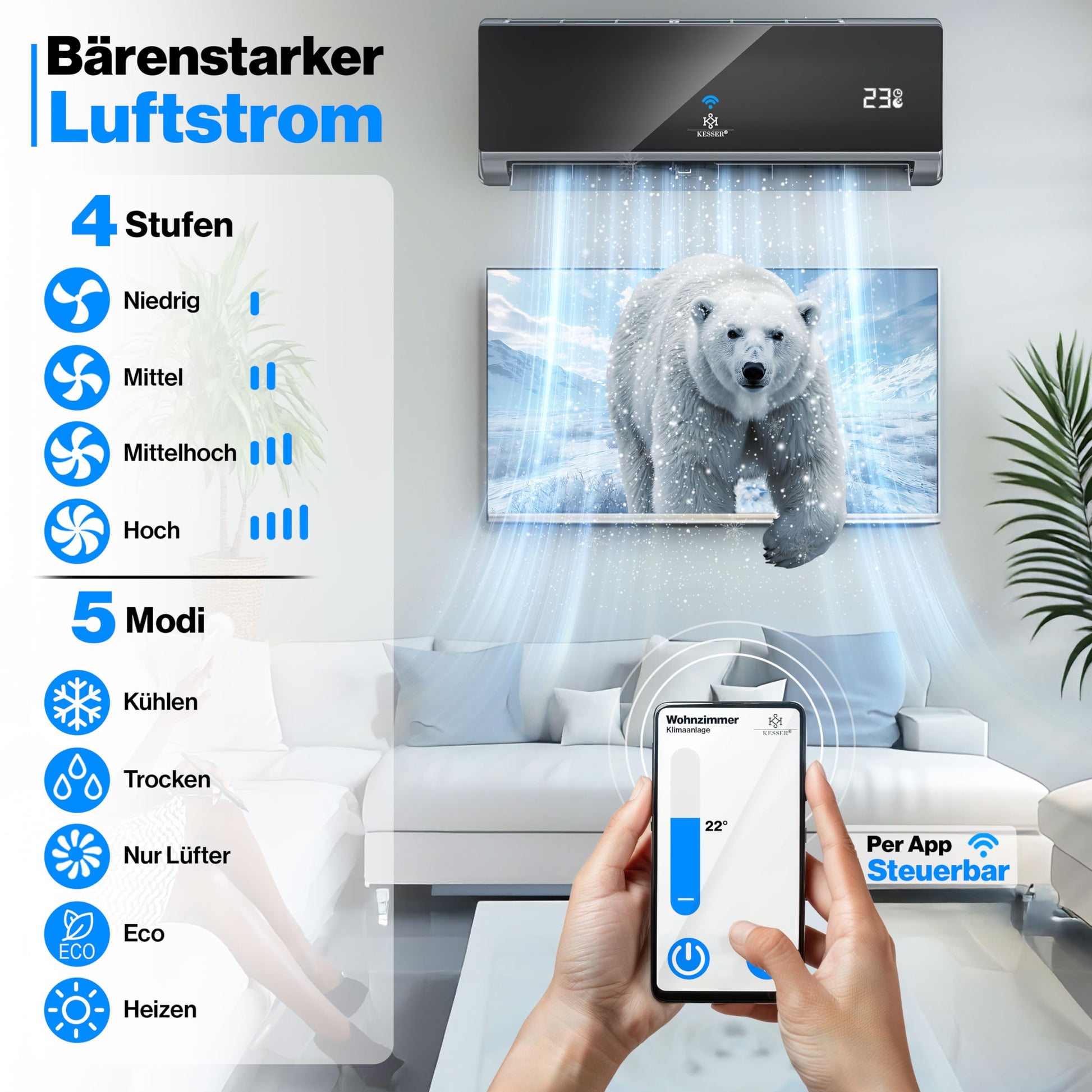 KESSER® Split Klimaanlage 9000 BTU/h WiFi R32