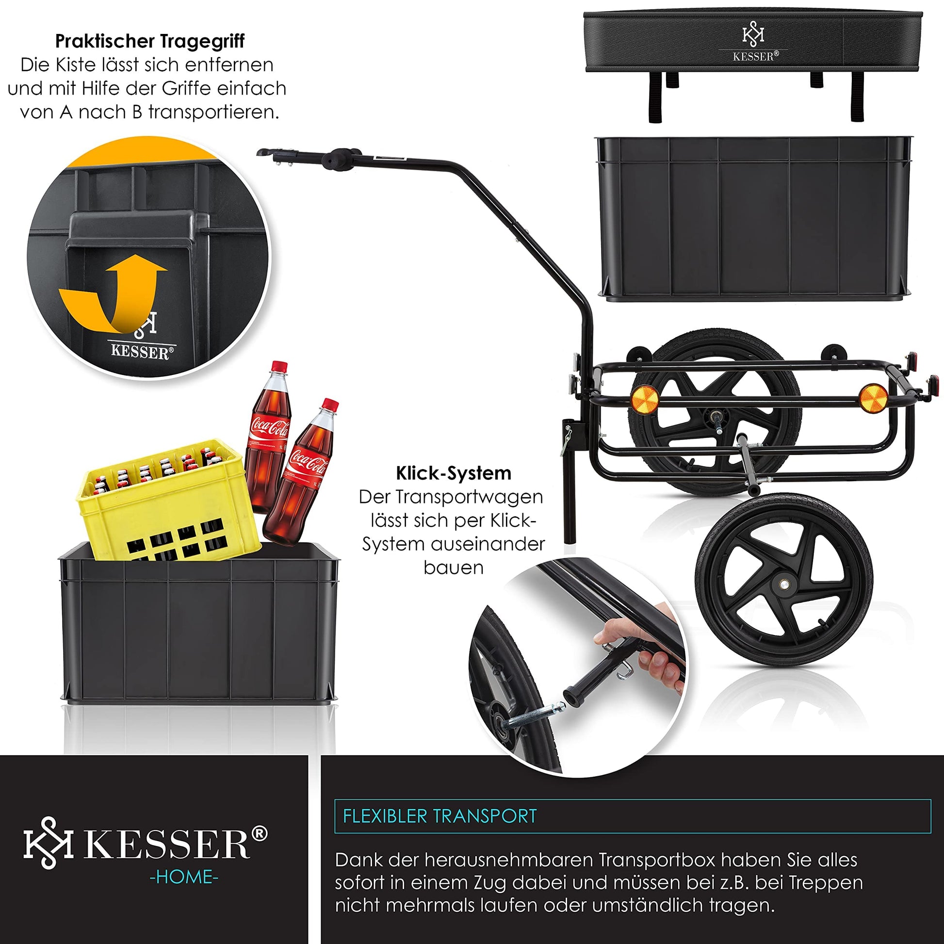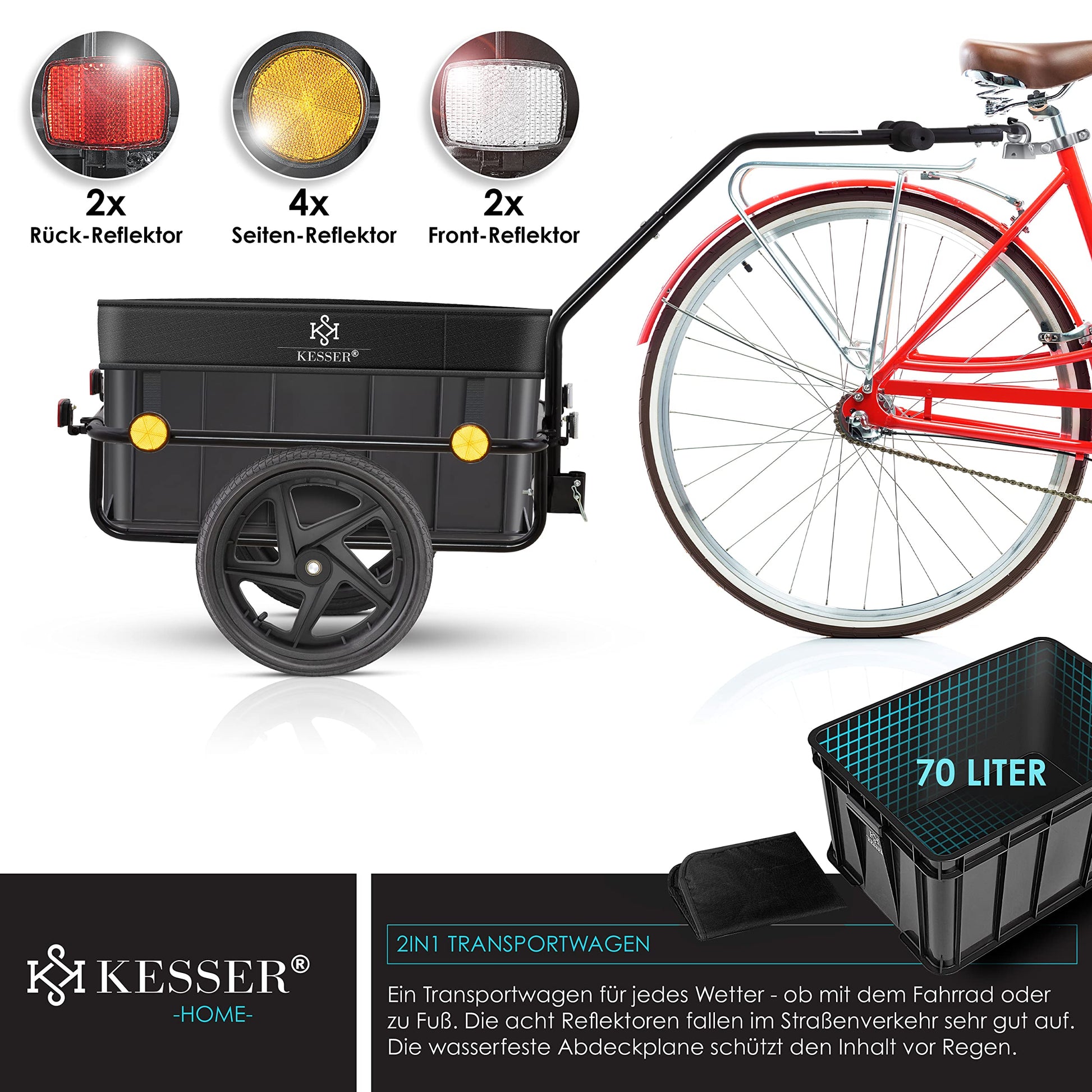 KESSER Velo Lastenanhänger 70L – Schwarz, inkl. Kupplung