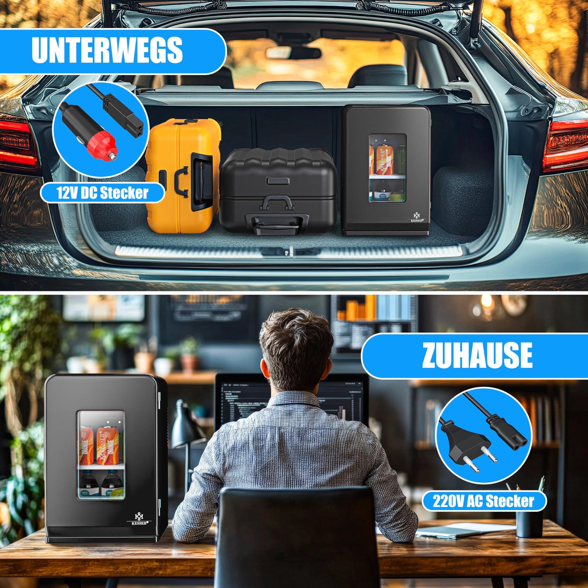 Der KESSER® 2in1 Mini-Kühlschrank ist die vielseitige Lösung, um Speisen und Getränke unterwegs zuverlässig zu kühlen oder warmzuhalten. Dank seiner kompakten Bauweise und den dualen Stromanschlüssen ist er der perfekte Begleiter für Auto, Büro und Camping.