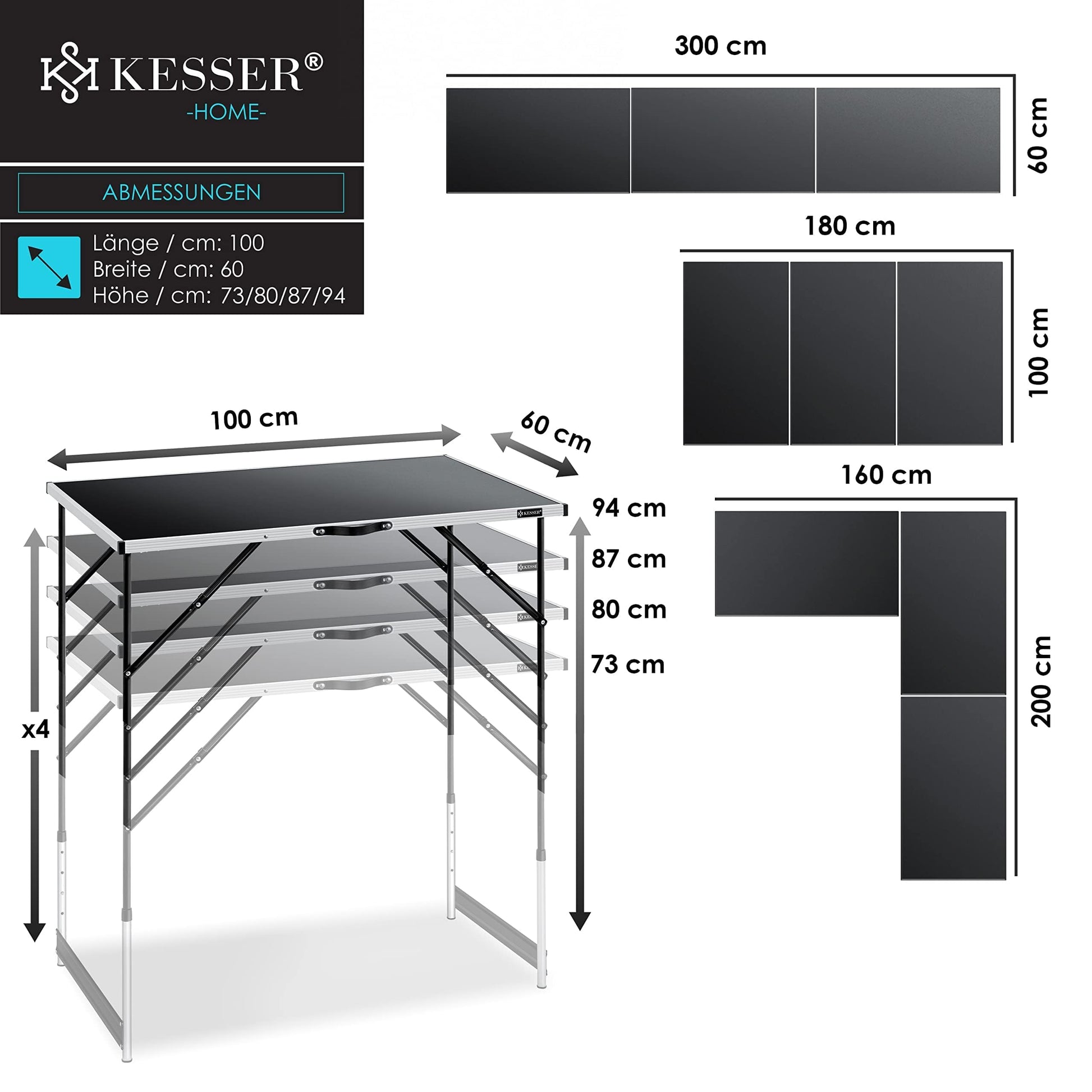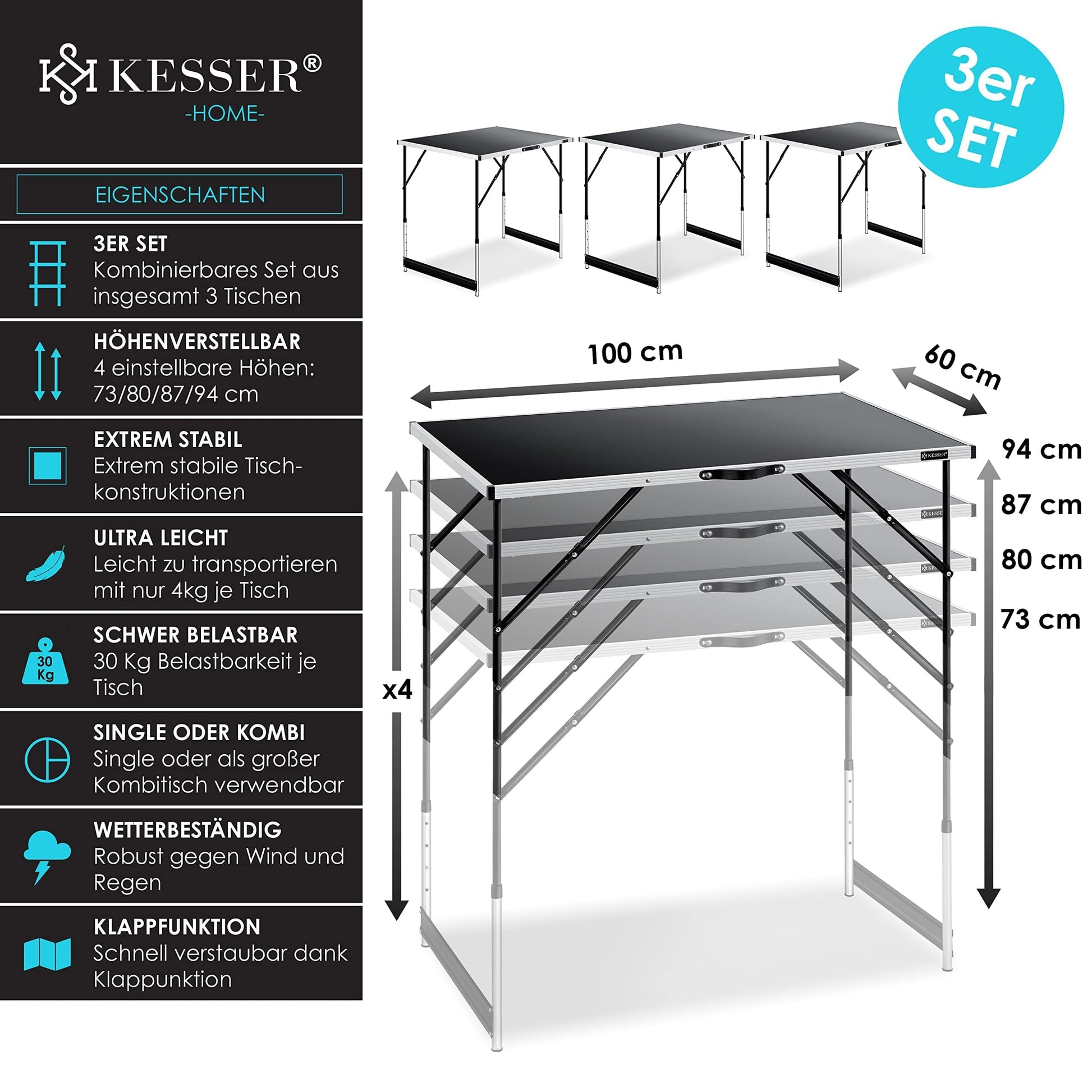 KESSER Multifunktionstisch Profi 3-teilig – Klapptisch höhenverstellbar
