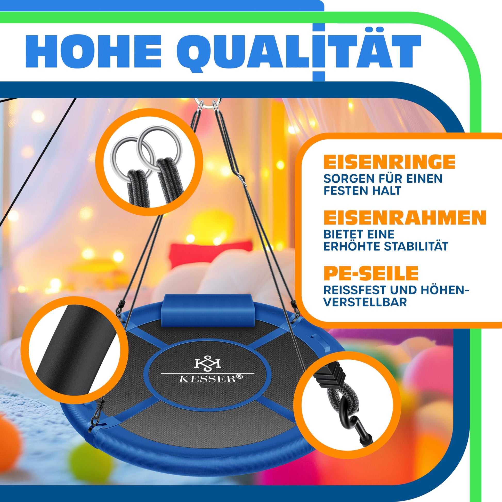 Holen Sie sich das Vergnügen eines Spielplatzes direkt in Ihren Garten oder Ihr Zuhause. Diese komfortable Nestschaukel von KESSER bietet entspannten Spass für die ganze Familie, sowohl drinnen als auch draussen.