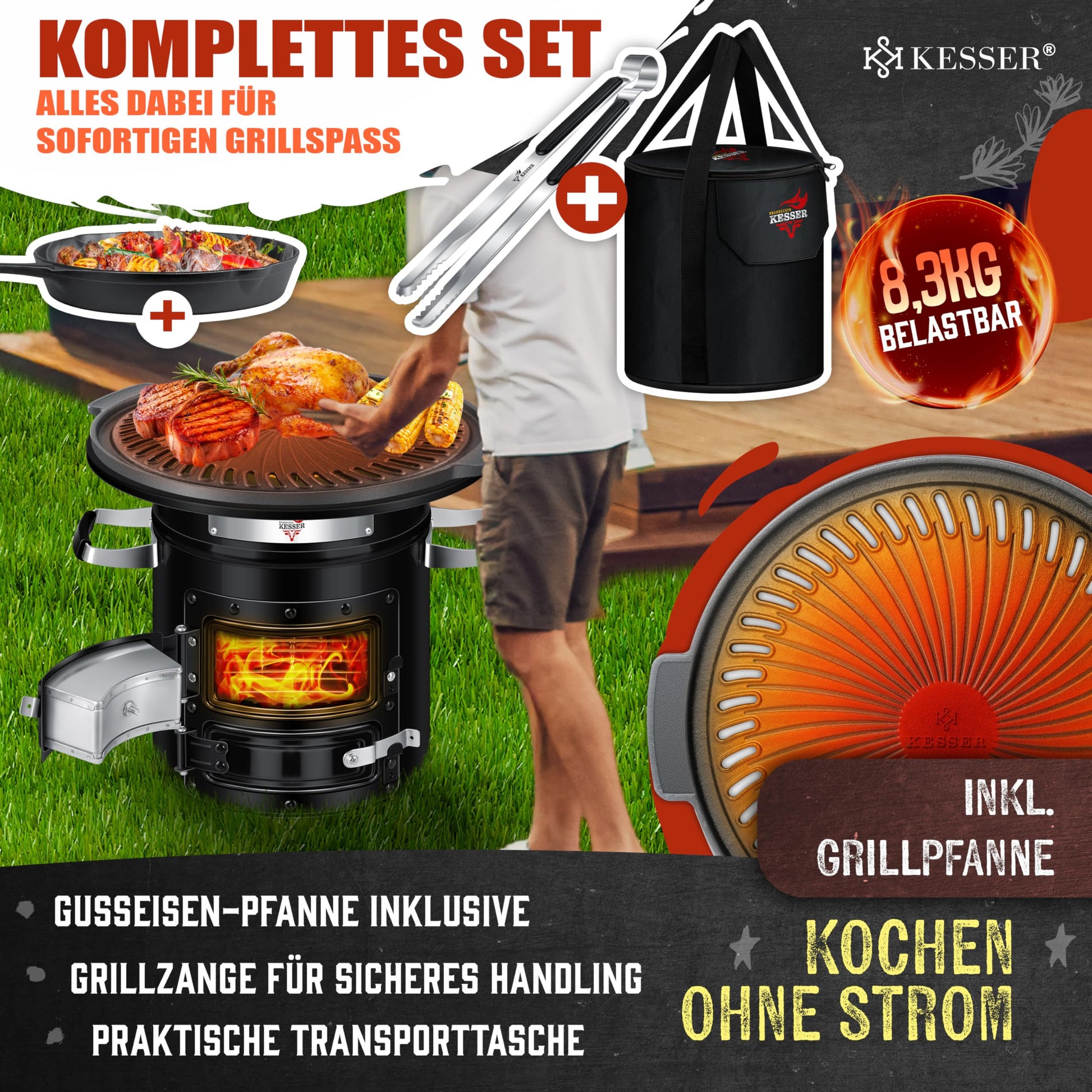KESSER Raketenofen mit Gusseisen Grillpfanne – Camping Holzofen