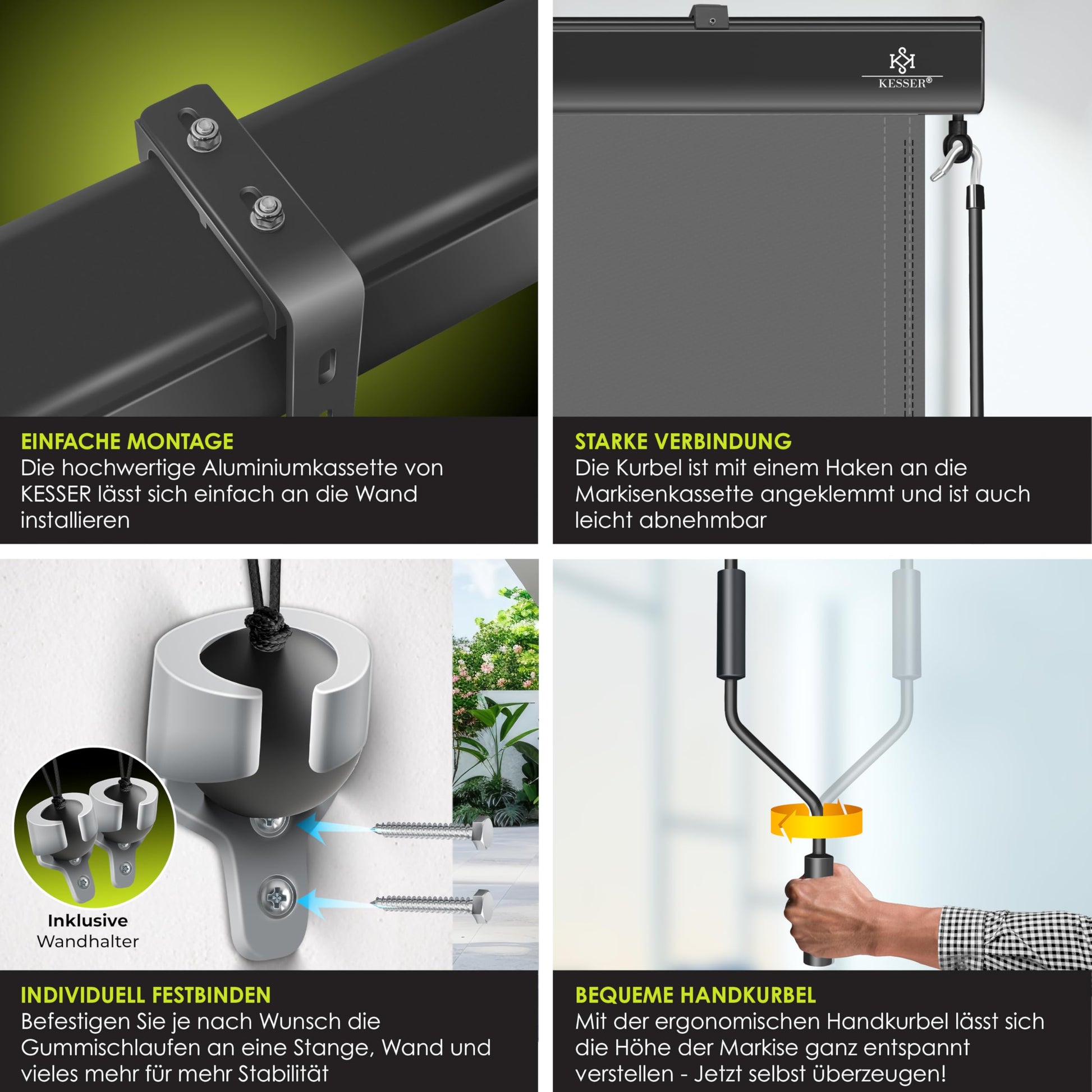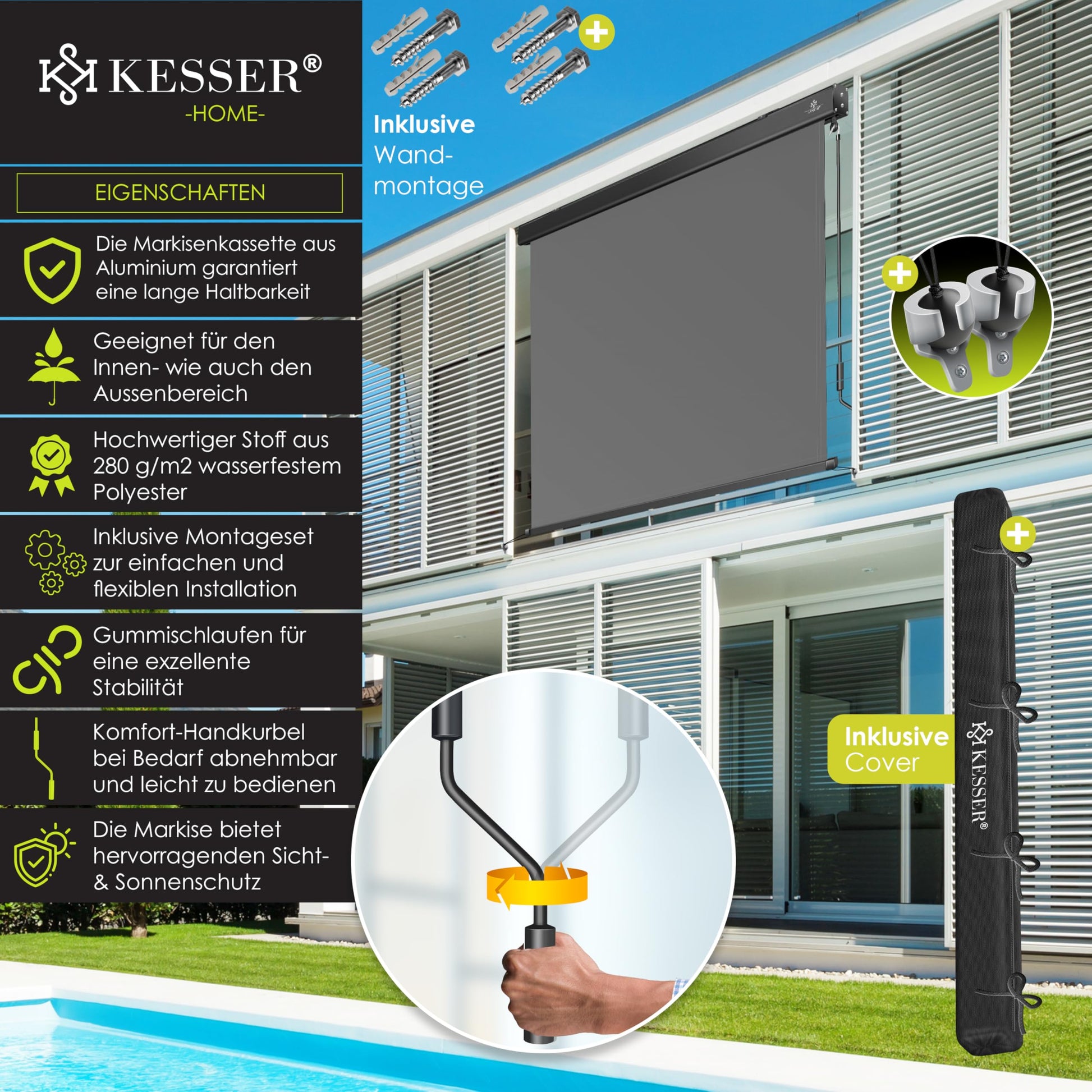 KESSER Senkrechtmarkise Aussenrollo – 200x250cm Kurbel