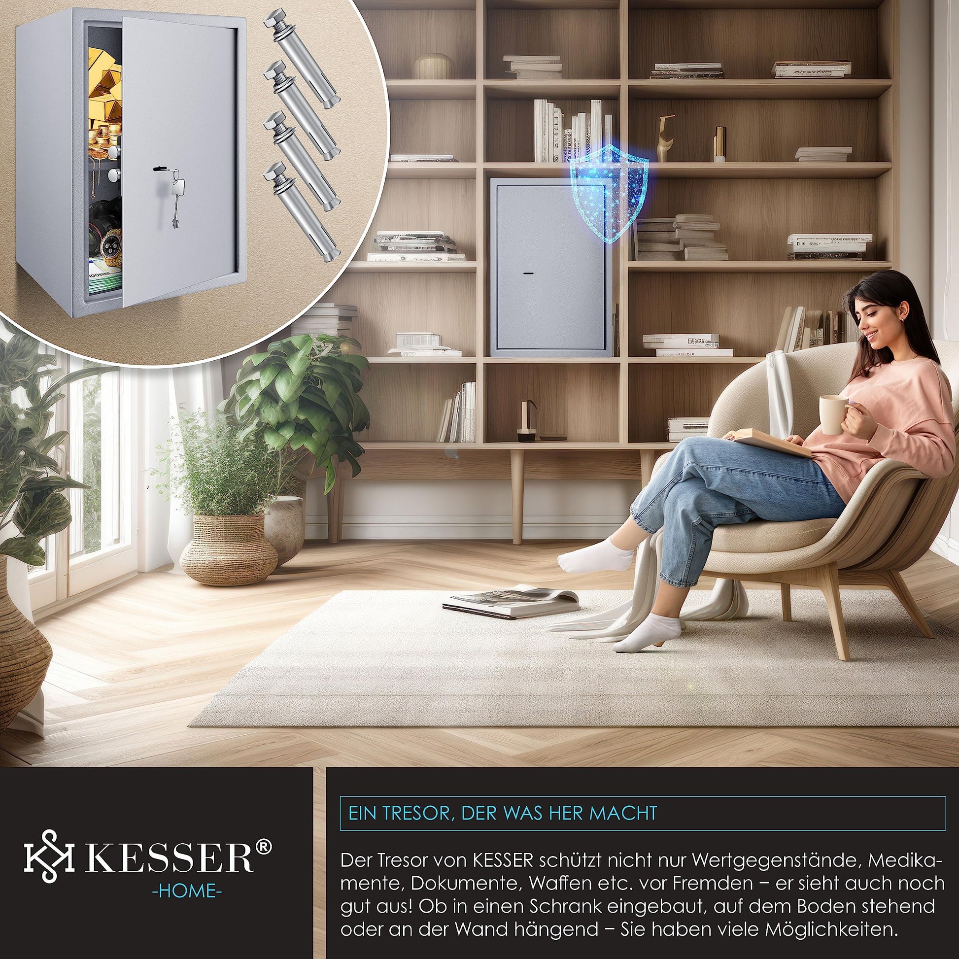 KESSER Safe Möbeltresor Doppelbartschloss – 50x35x31cm Silber