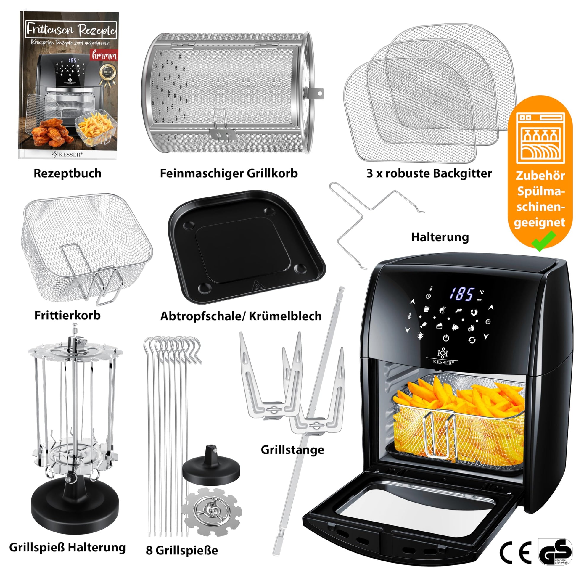 KESSER® XXL Airfryer 9in1 Heissluftfritteuse mit Drehgrill Schwarz