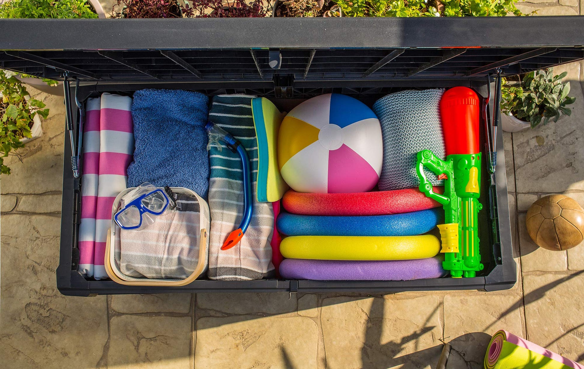 - Grosses Volumen: Bietet mit 570 Litern reichlich Platz für Kissen, Decken und Gartenzubehör.