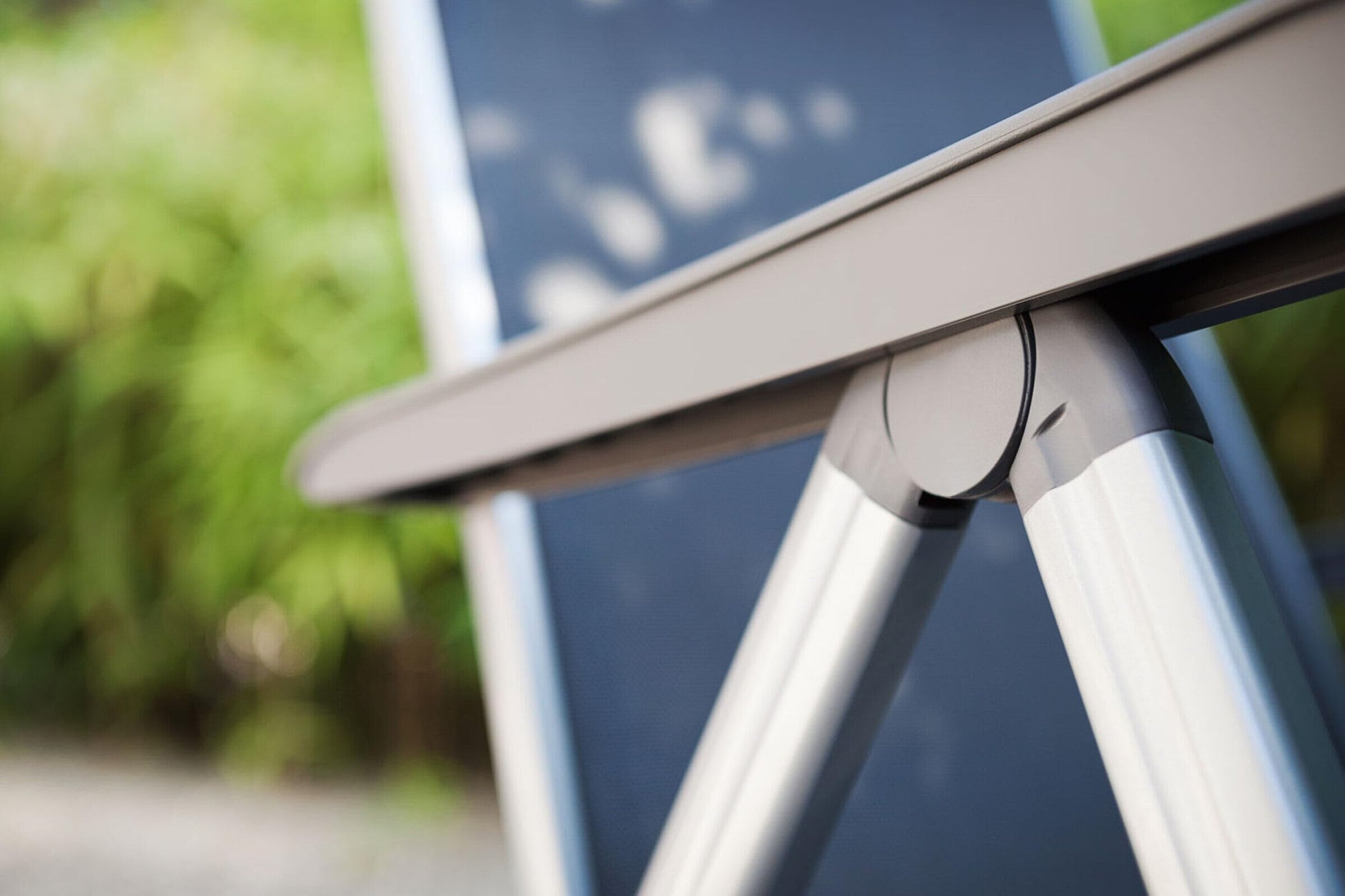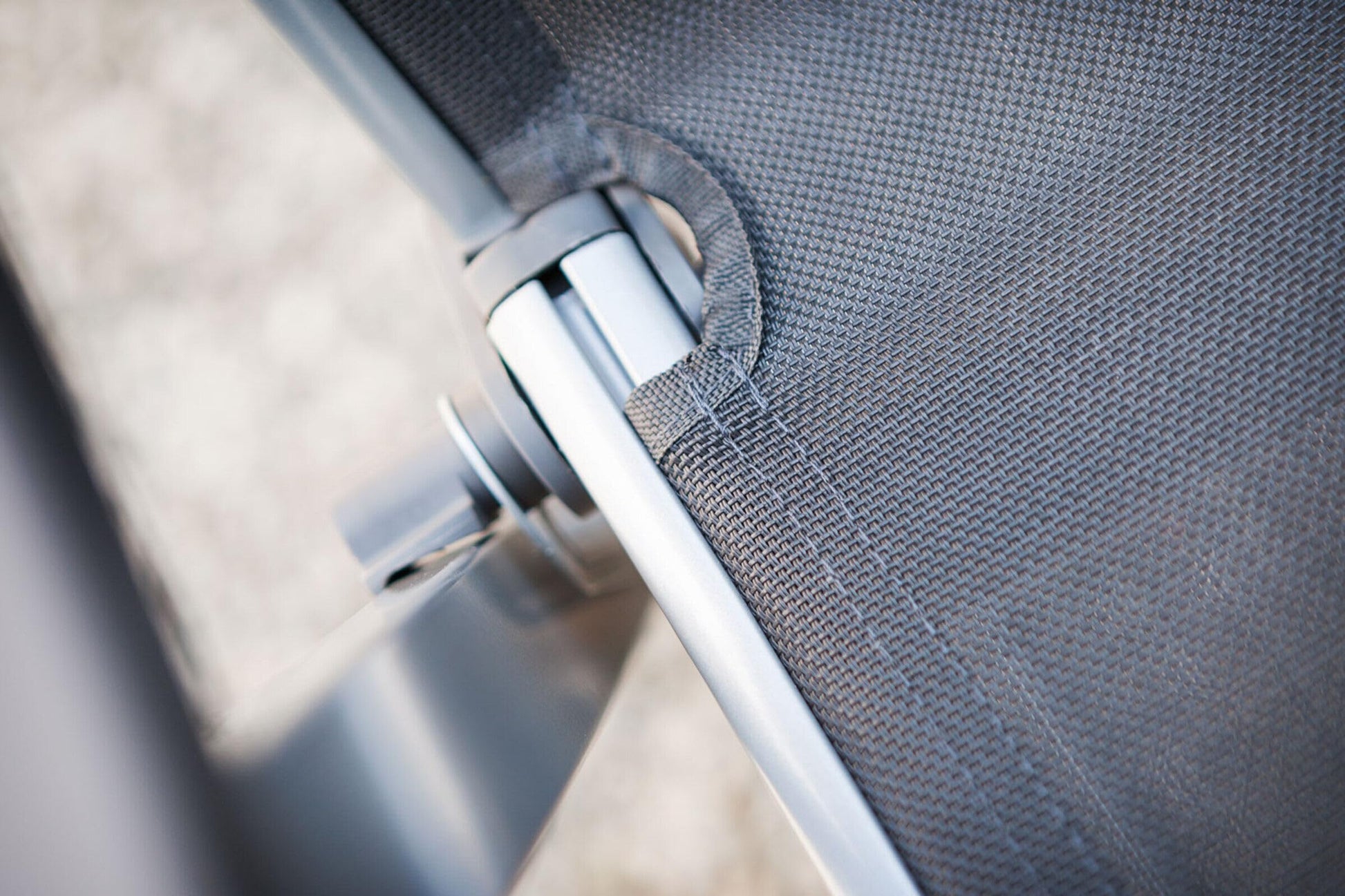 - Bequemes Outdoor-Gewebe: Die Bespannung aus widerstandsfähigem Gewebe sorgt auch ohne zusätzliche Polster für hohen Sitzkomfort über längere Zeit.