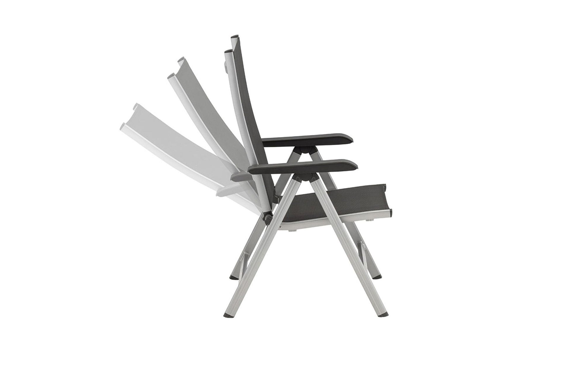 Mit seinem schlichten und modernen Design in Silber und Anthrazit fügt sich der Klappsessel harmonisch in jede Umgebung ein. Er ist die ideale Sitzgelegenheit für grosszügige Terrassen und Gärten, aber auch eine perfekte, platzsparende Lösung für kleinere Balkone.