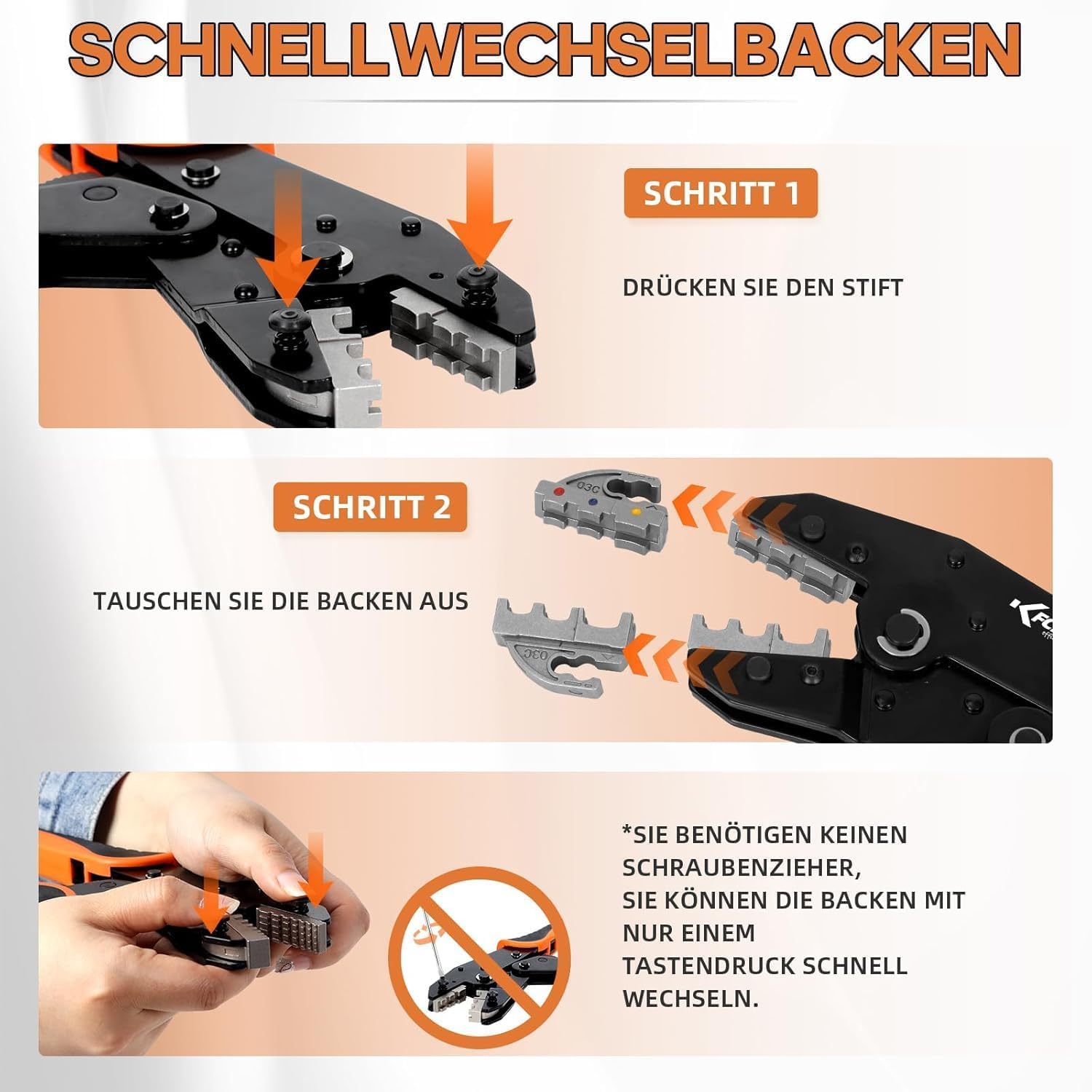 KF CPTEC Crimpzange Wechselbacken Set Ratschenfunktion – 9-teilig