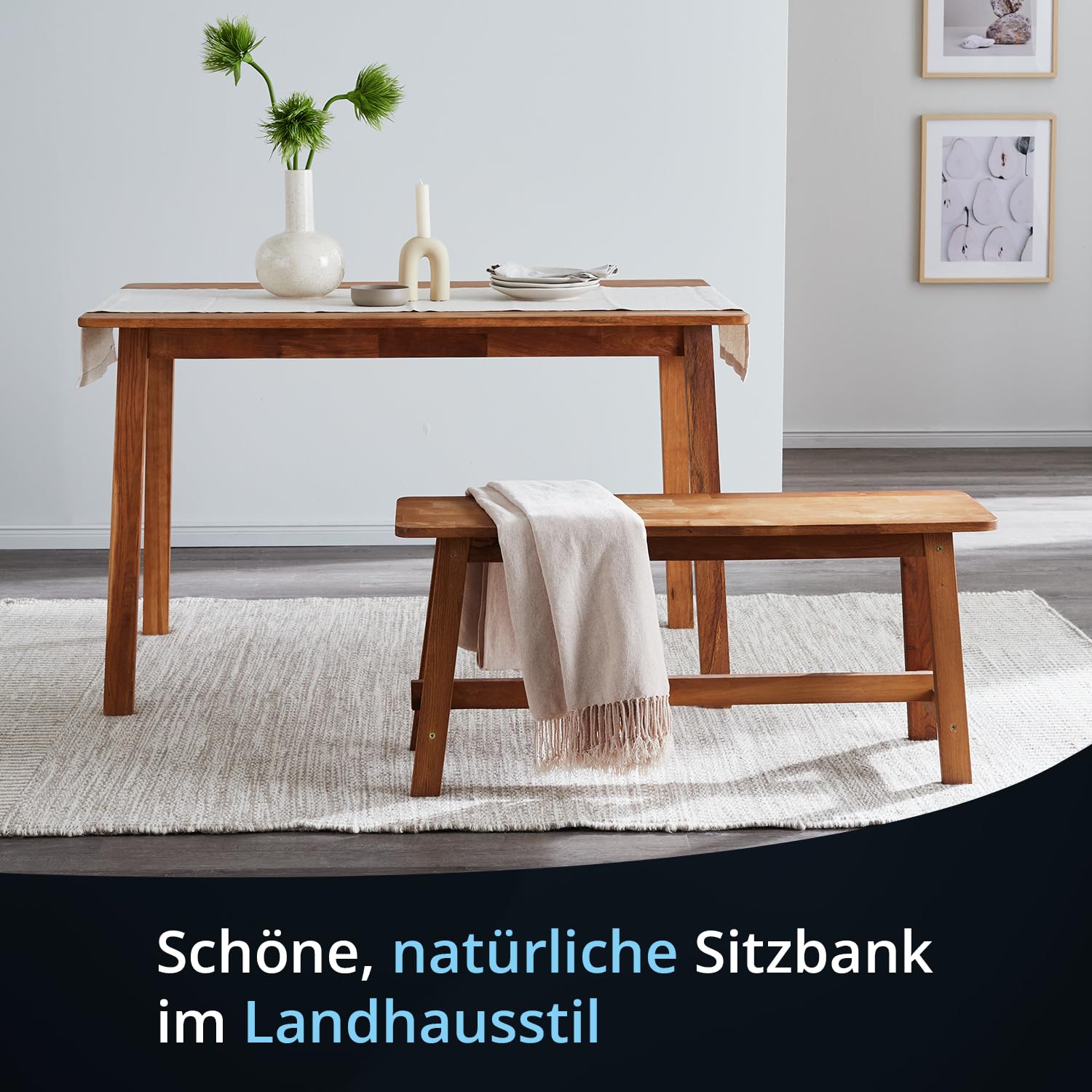 Dank ihres schlichten und naturbelassenen Designs im zeitlosen Landhausstil fügt sich die Bank harmonisch in verschiedenste Einrichtungen ein, von modern bis rustikal, und verleiht jedem Raum einen Hauch von Natürlichkeit.