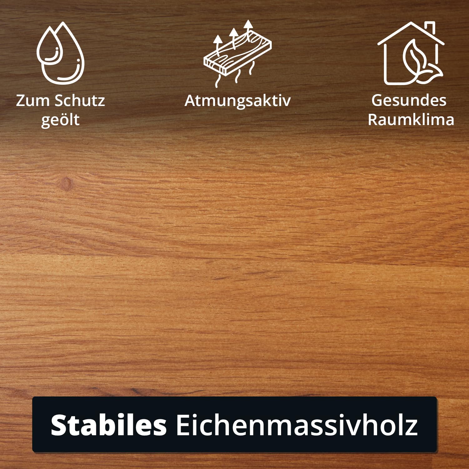 - Robustes Massivholz: Gefertigt aus solider, massiver Eiche, die für ihre Langlebigkeit und ihre wunderschöne, natürliche Maserung bekannt ist.