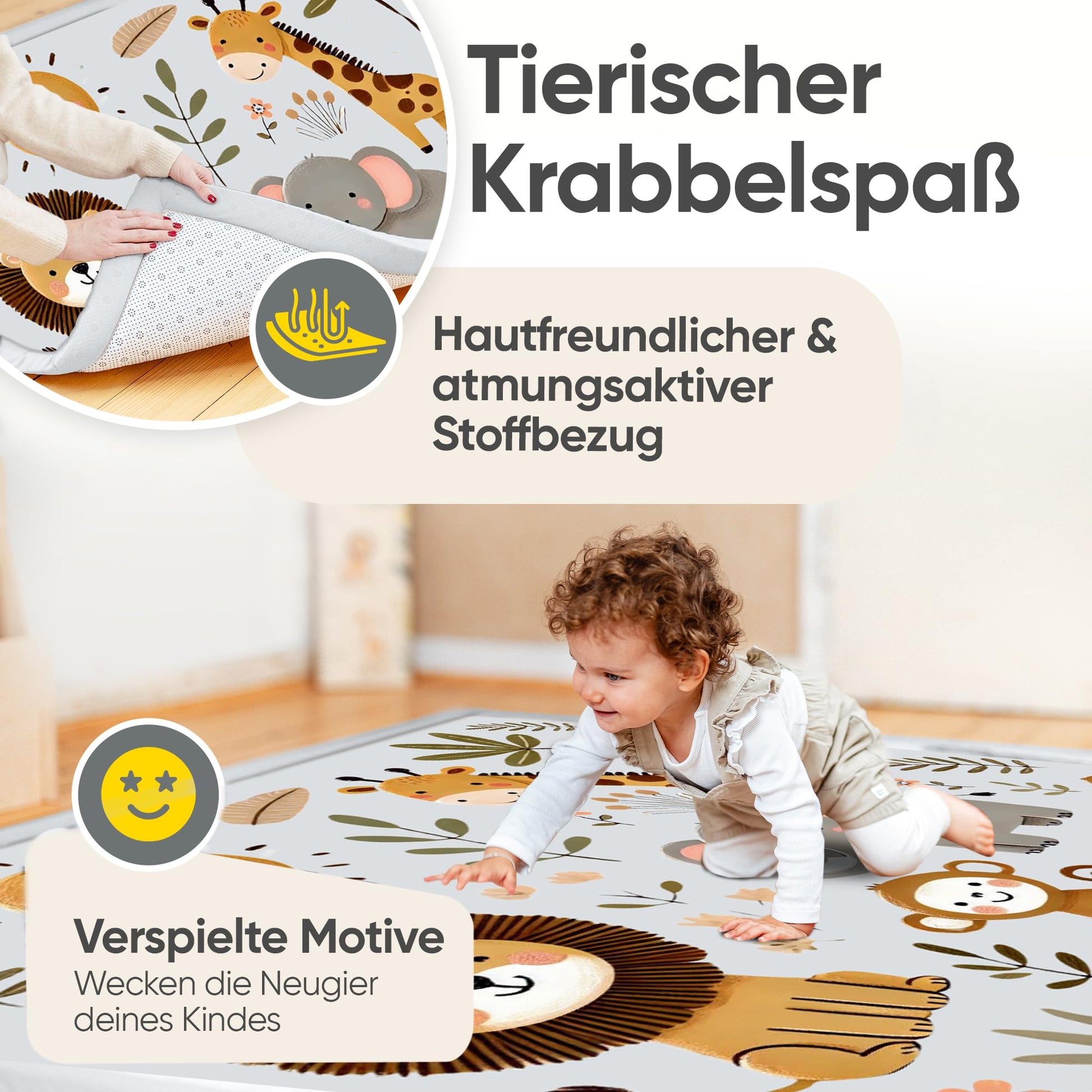 Diese Krabbelmatte ist die ideale Kombination aus Sicherheit, weichem Komfort und stilvoller Dekoration für die Kleinsten.