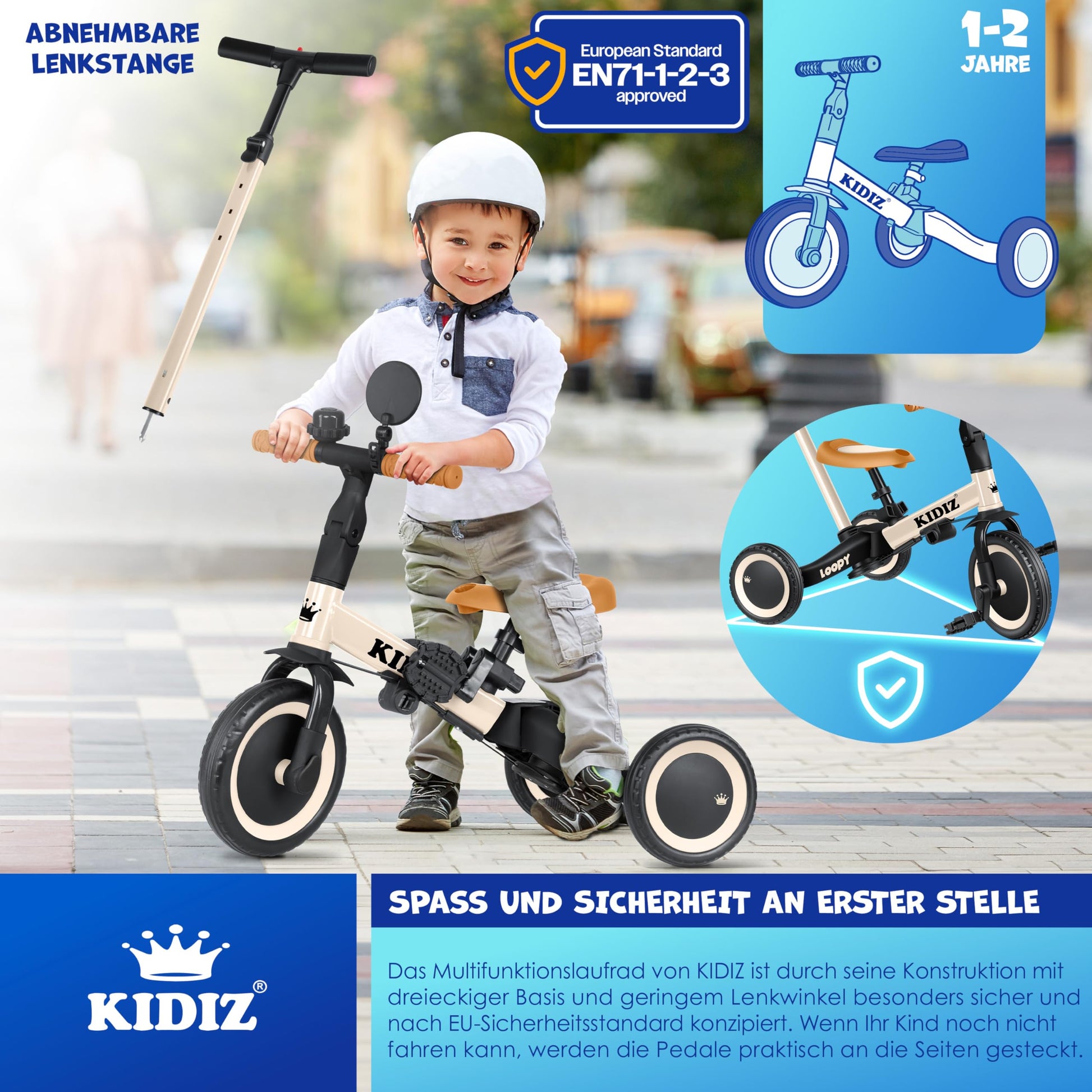 KIDIZ® 6in1 Laufrad Dreirad Lauflernhilfe ab 1 Jahr - Beige