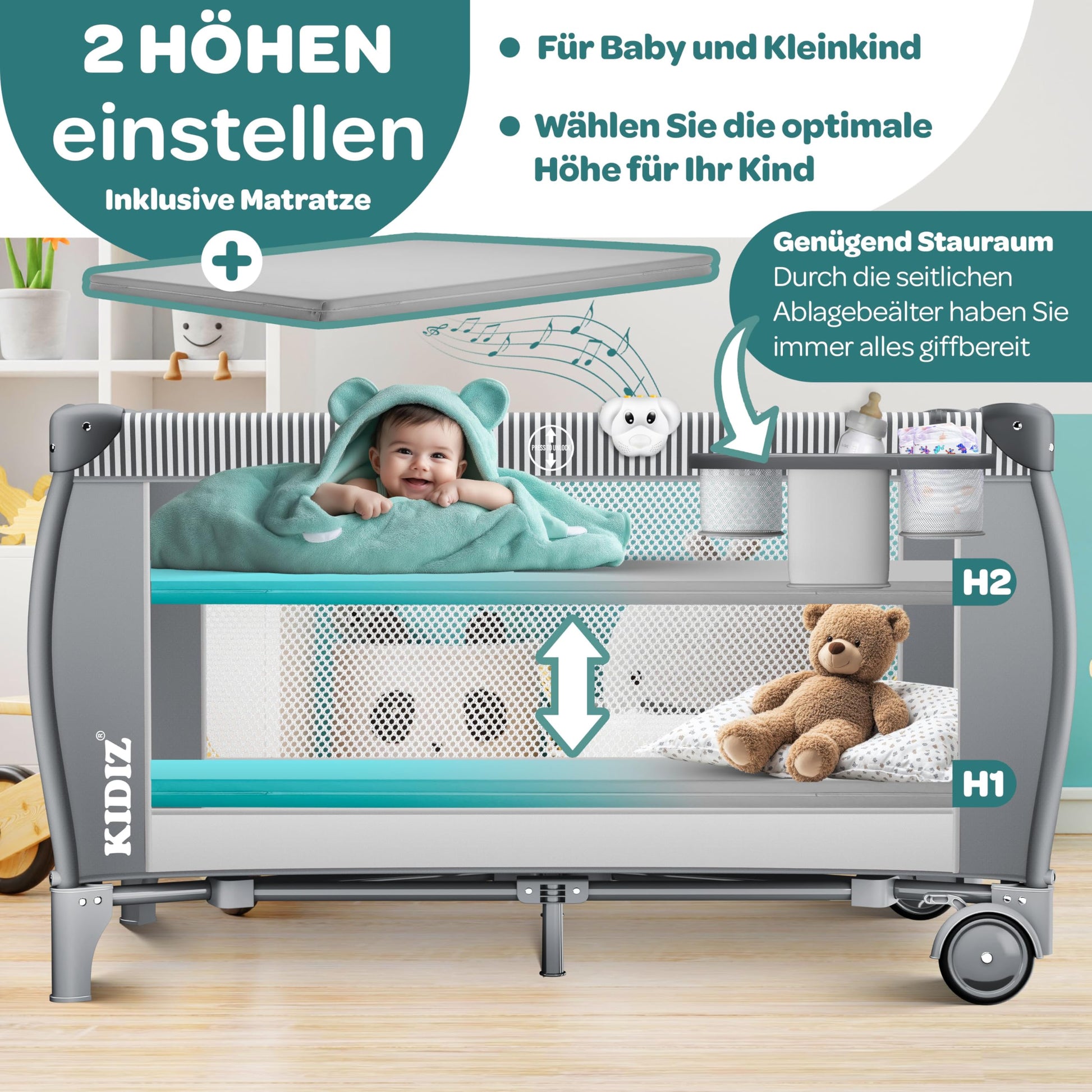 Kidiz Reisebett Baby klappbar 120x60 Grau mit Matratze