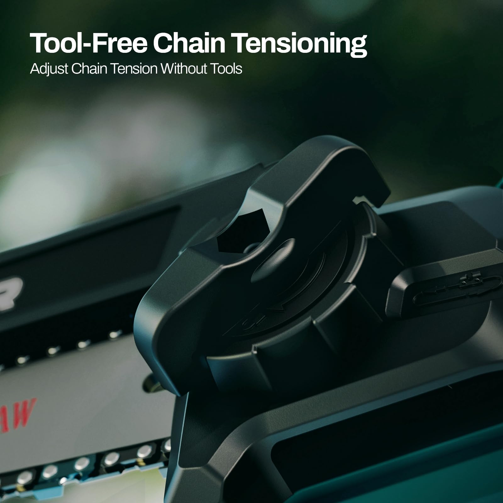 - Werkzeuglose Handhabung: Das Spannen und Wechseln der Kette erfolgt komplett ohne zusätzliches Werkzeug, was die Wartung vor Ort schnell und unkompliziert macht.