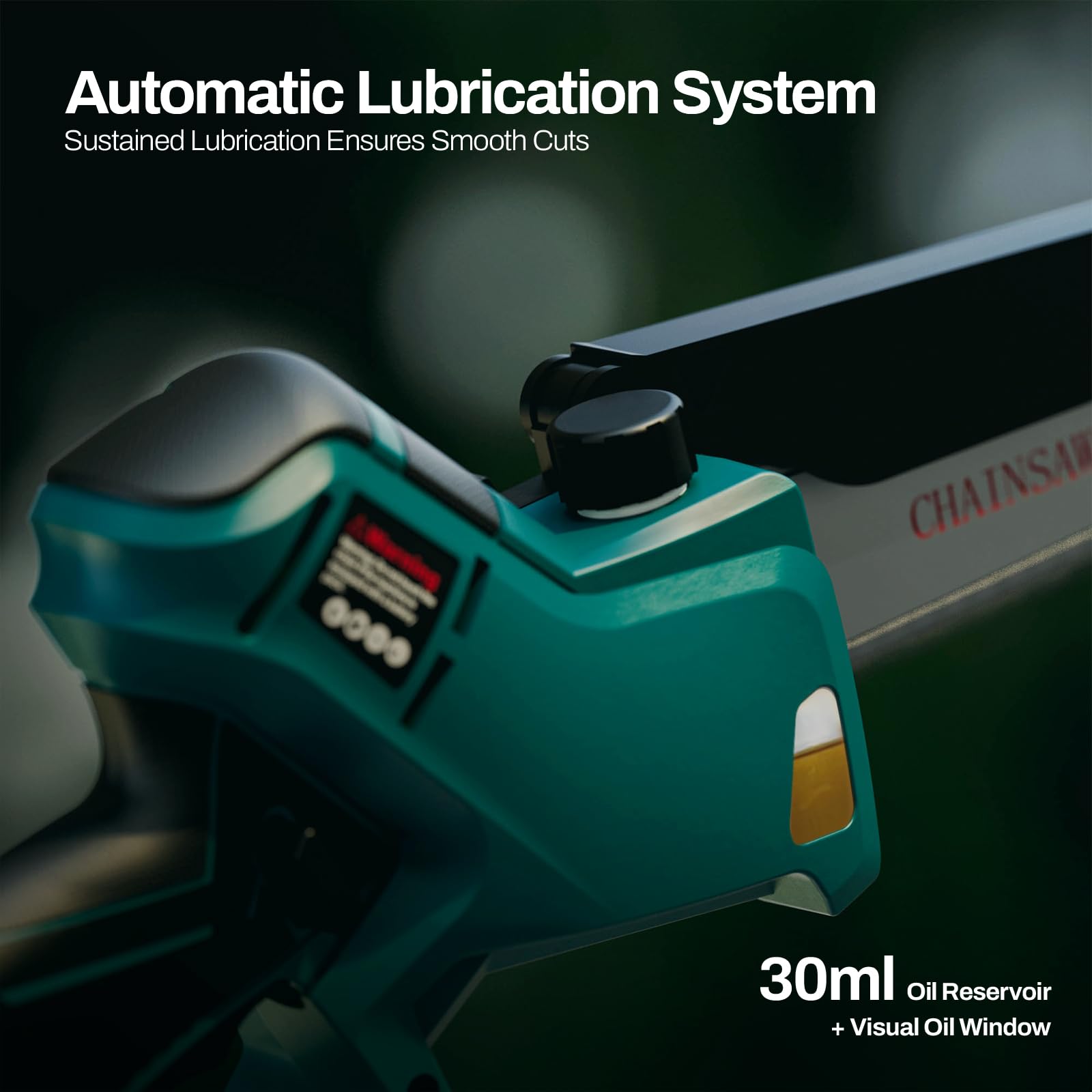 - Automatische Kettenschmierung: Ein 30-ml-Öltank mit Sichtfenster versorgt die Kette kontinuierlich und selbstständig mit Öl, was den Verschleiss minimiert und die Leistung optimiert.