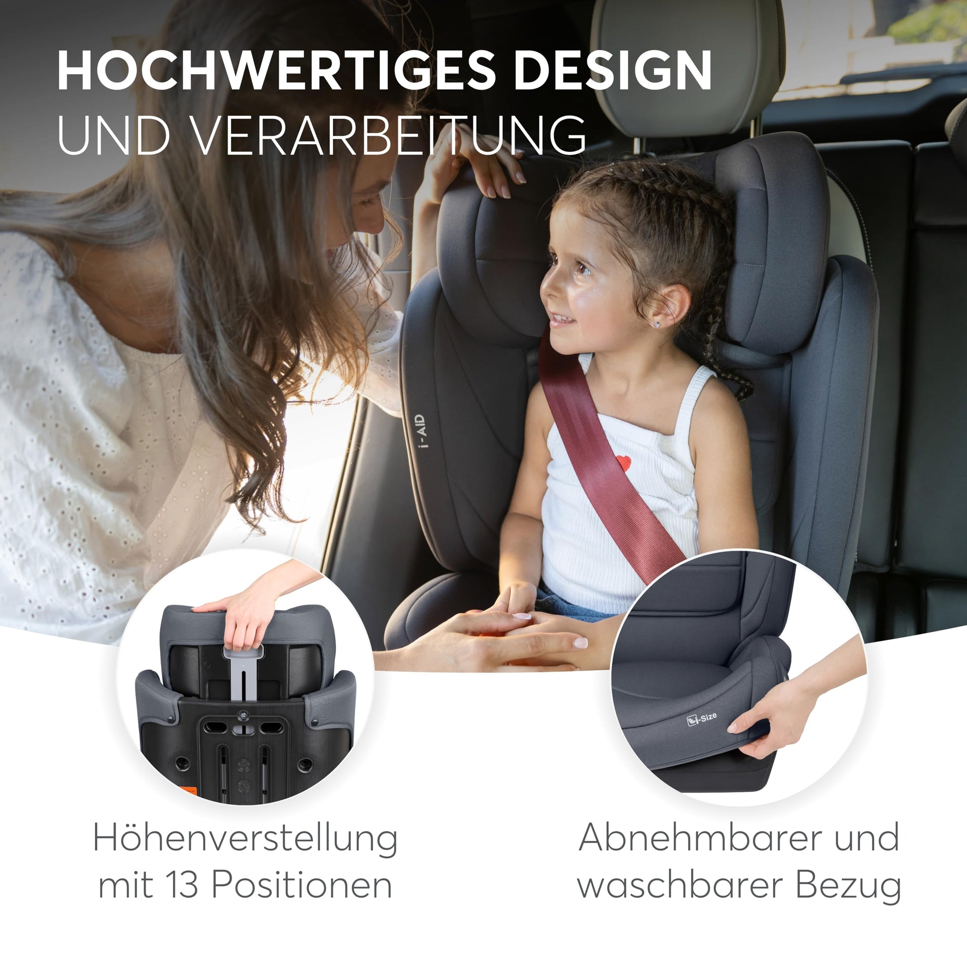 Der Kindersitz i-AID ist der verlässliche und sichere Begleiter für Ihr Kind auf allen Autofahrten. Er wurde entwickelt, um vom Kindergartenalter bis zum Ende der Kindersitzpflicht mitzuwachsen und dabei stets höchsten Schutz und Komfort zu gewährleisten.