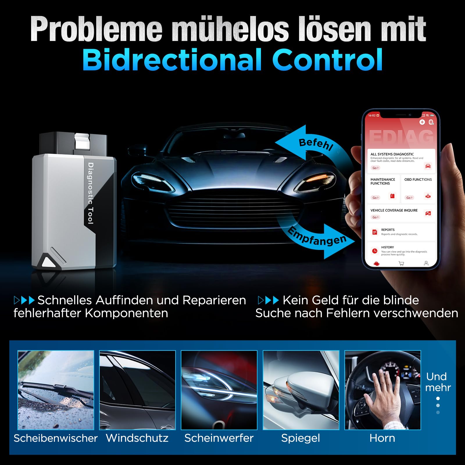 Dieses Diagnosegerät ist die ideale, kosteneffiziente Lösung für ambitionierte Heimwerker und Profis, die eine umfassende Diagnosefunktionalität in einem kompakten Format suchen.