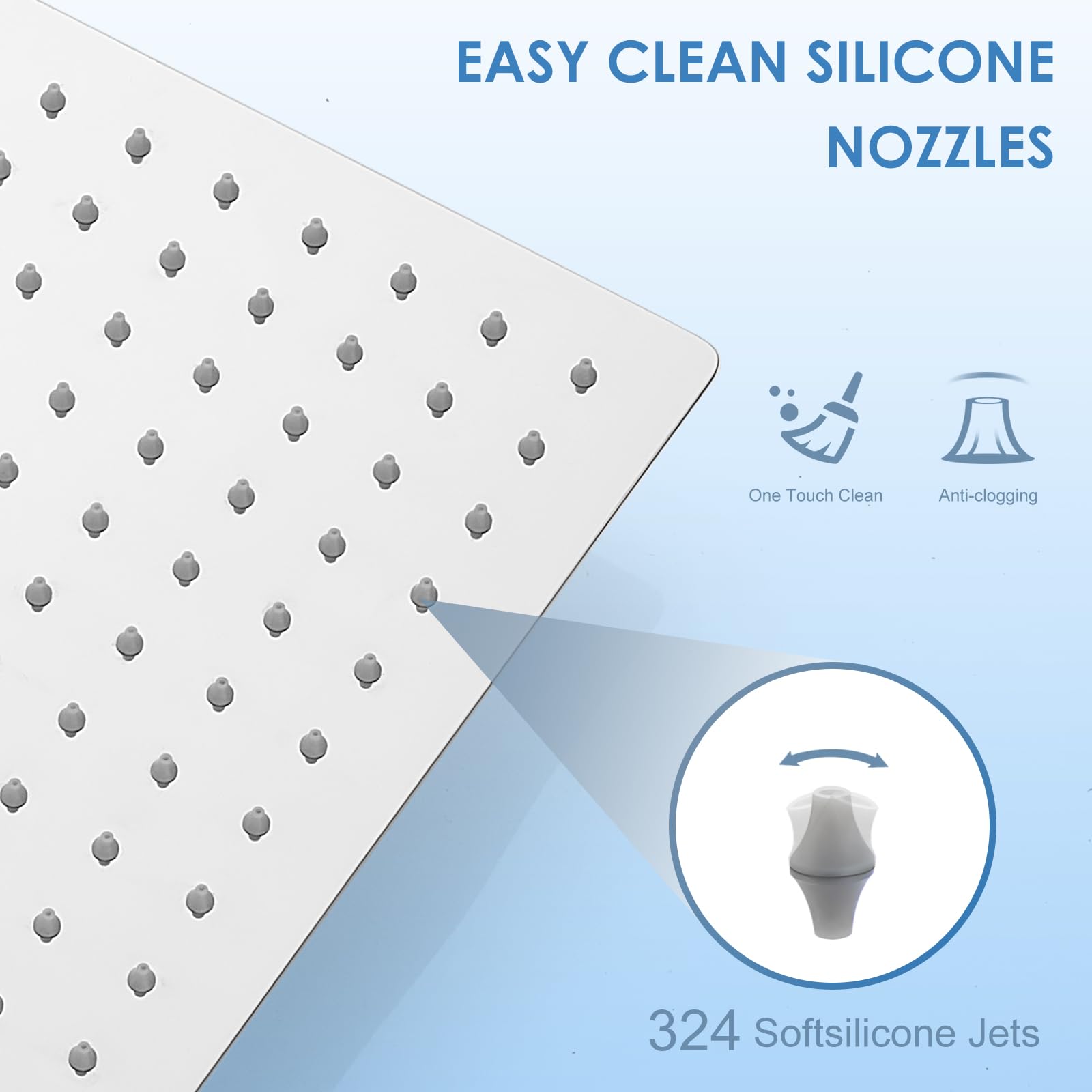 - Selbstreinigende Anti-Kalk-Düsen: Die flexiblen Silikondüsen verhindern effektiv Kalkablagerungen und lassen sich durch einfaches Darüberstreichen mühelos reinigen.