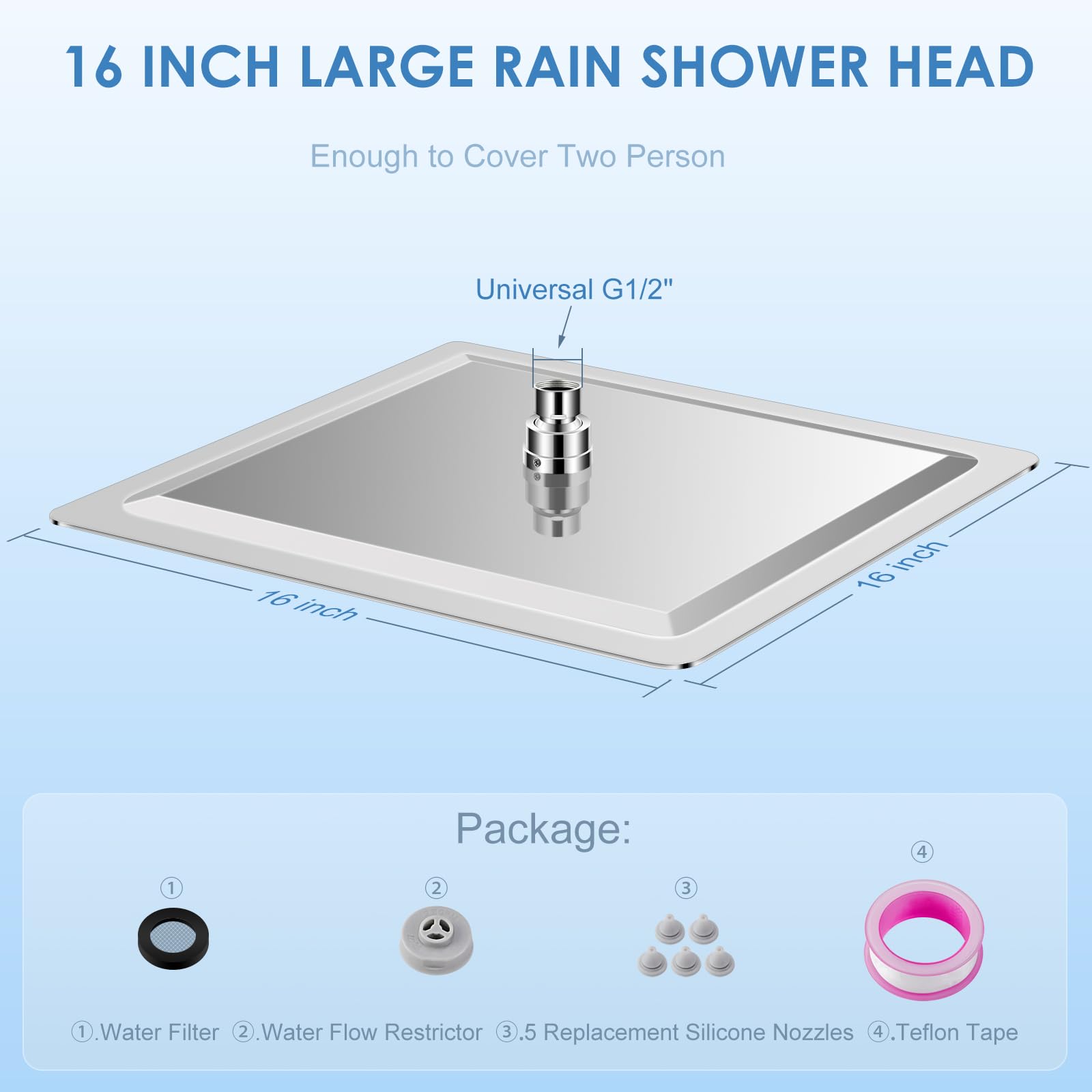 - Grossflächiges Design: Mit einer Kantenlänge von 40 cm und 324 präzise angeordneten Düsen garantiert dieser Duschkopf eine vollständige und gleichmässige Wasserverteilung.