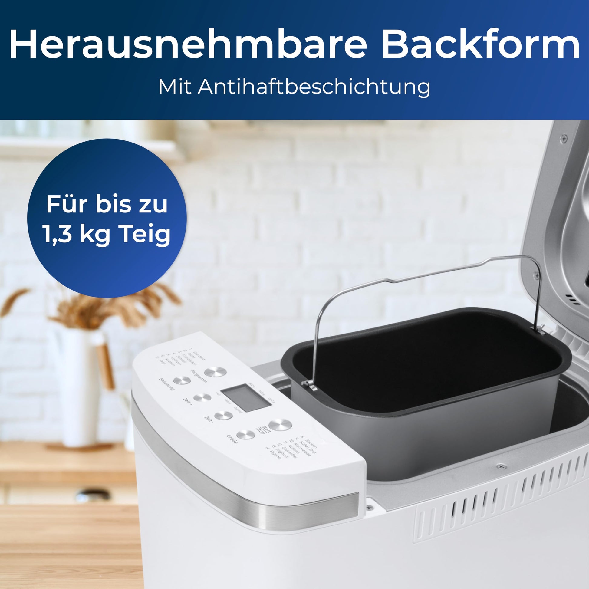 KLAMER Brotbackautomat für Brot & Teig, 14 Programme – Weiss