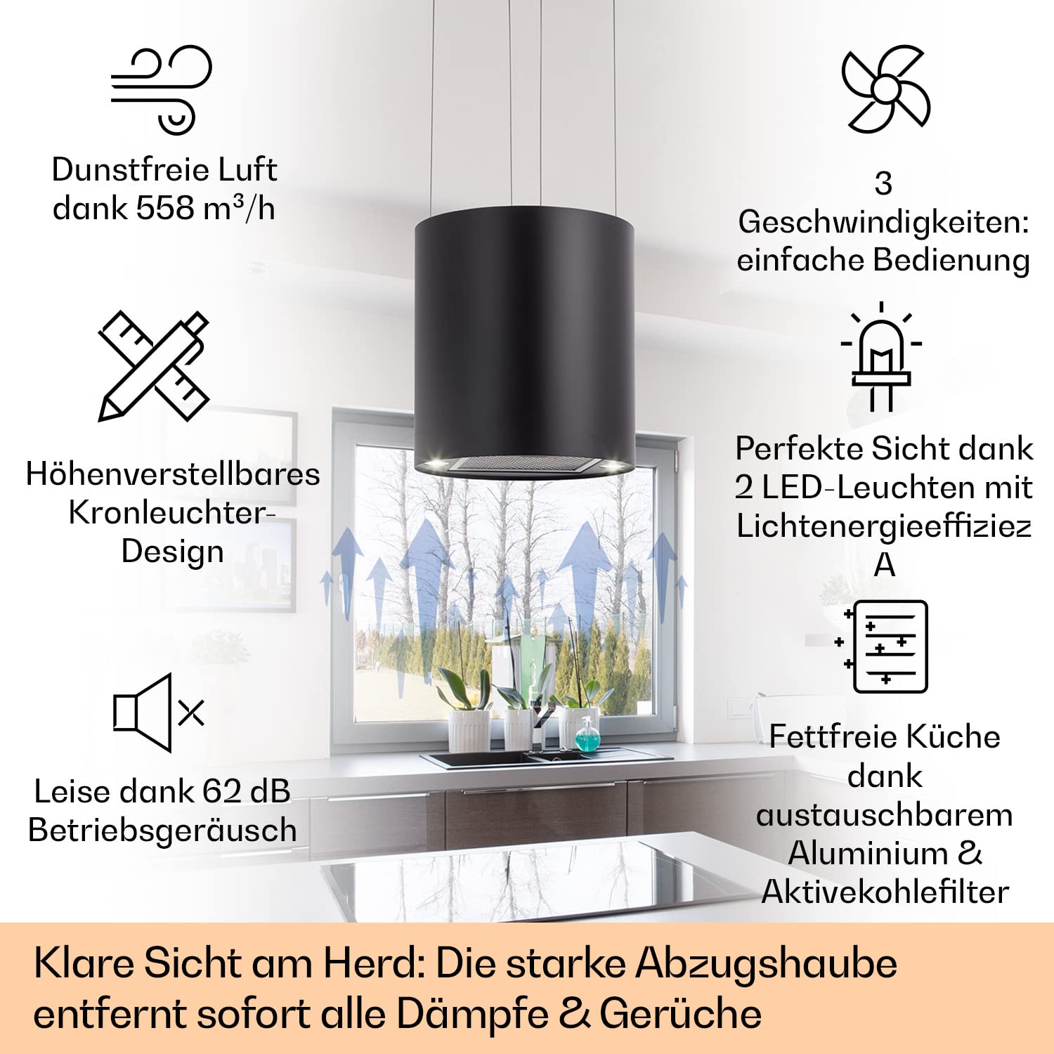 Klarstein Inselhaube Umluft – 558m³/h Kronleuchter Design