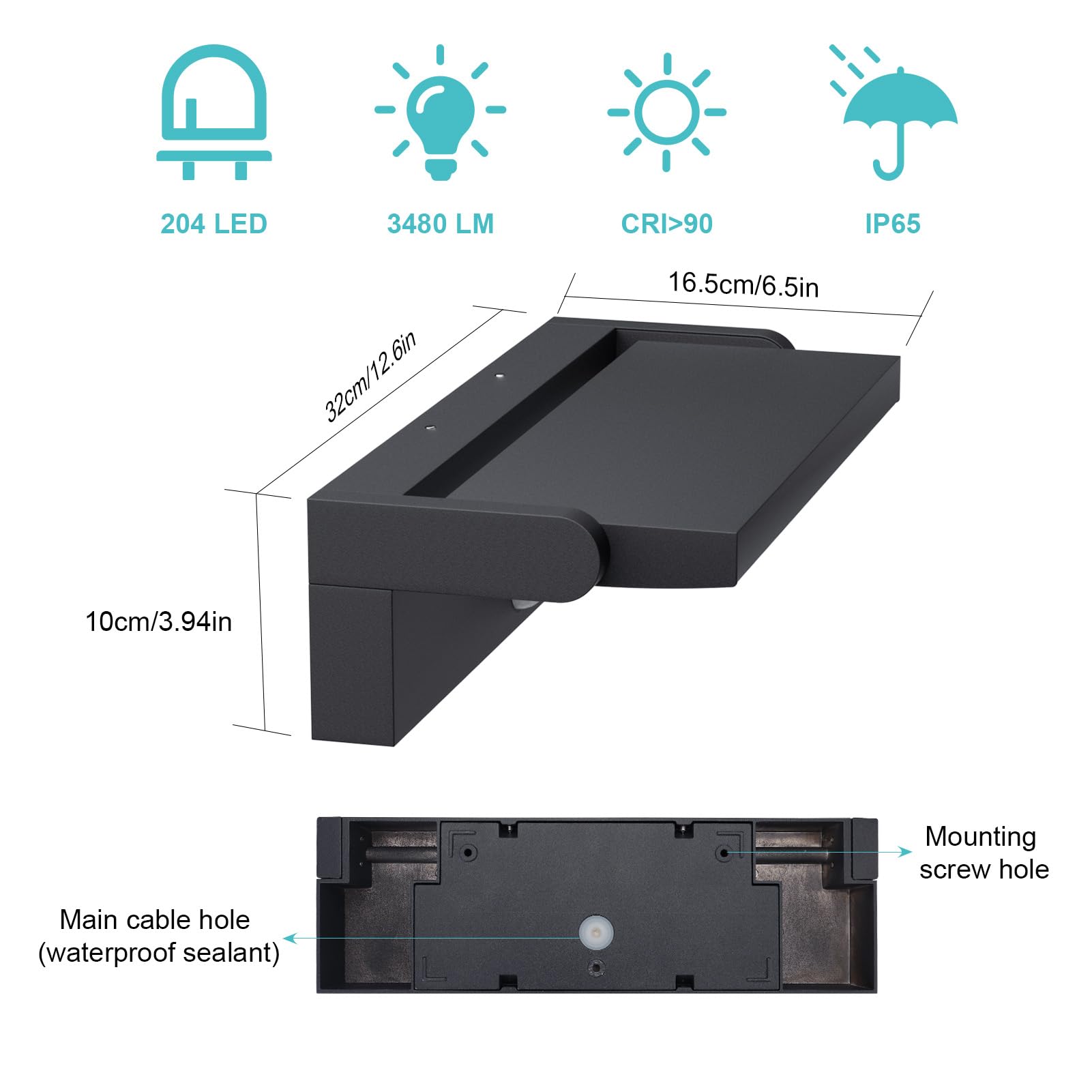 Dank der hohen Schutzklasse IP65 und der Fertigung aus hochwertigem Aluminium ist die Wandleuchte extrem widerstandsfähig gegen Witterungseinflüsse. Sie eignet sich perfekt für den Einsatz im Freien und garantiert eine lange Lebensdauer, egal ob im Garten, auf dem Balkon oder am Hauseingang.