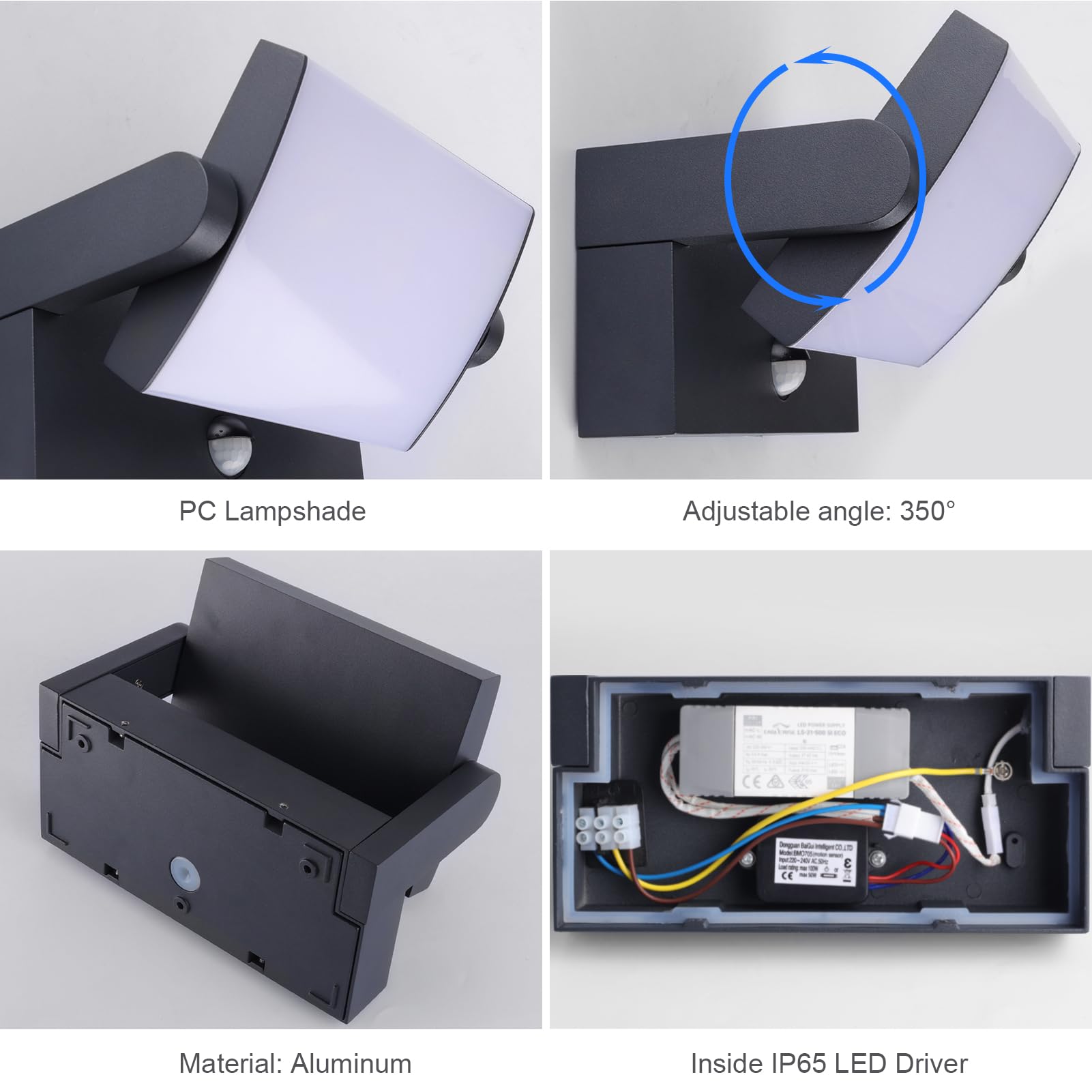 Diese moderne Aussenwandleuchte kombiniert ein flexibles Design mit intelligenter Sensortechnik, um Ihren Eingangsbereich, Ihre Terrasse oder Ihren Garten zuverlässig und stilvoll zu beleuchten.