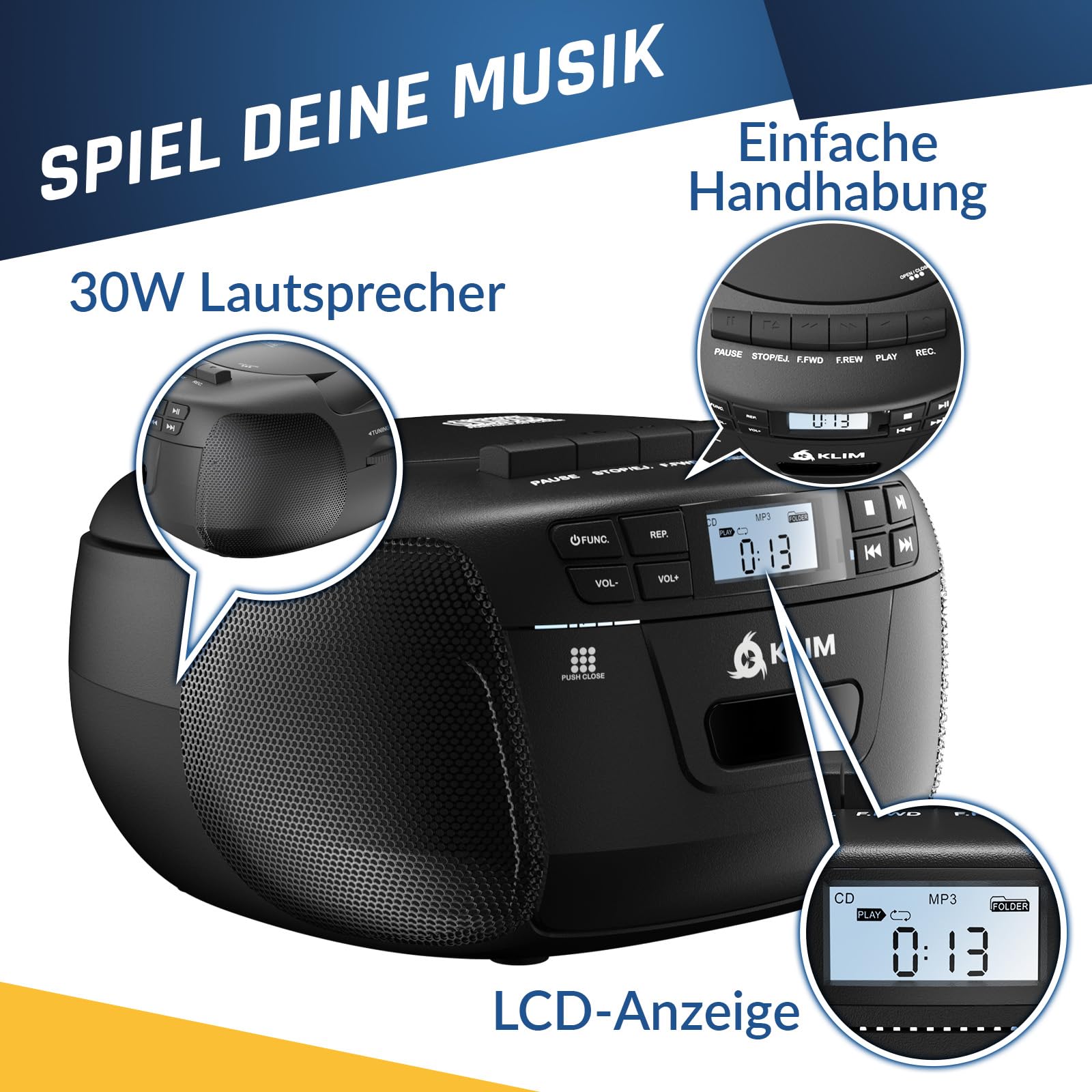 KLIM CD Kassette Radio Player - Bluetooth USB Etui