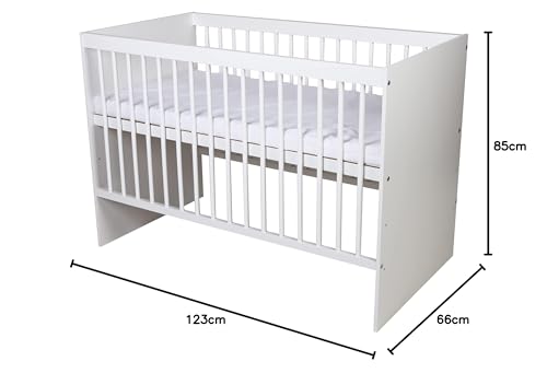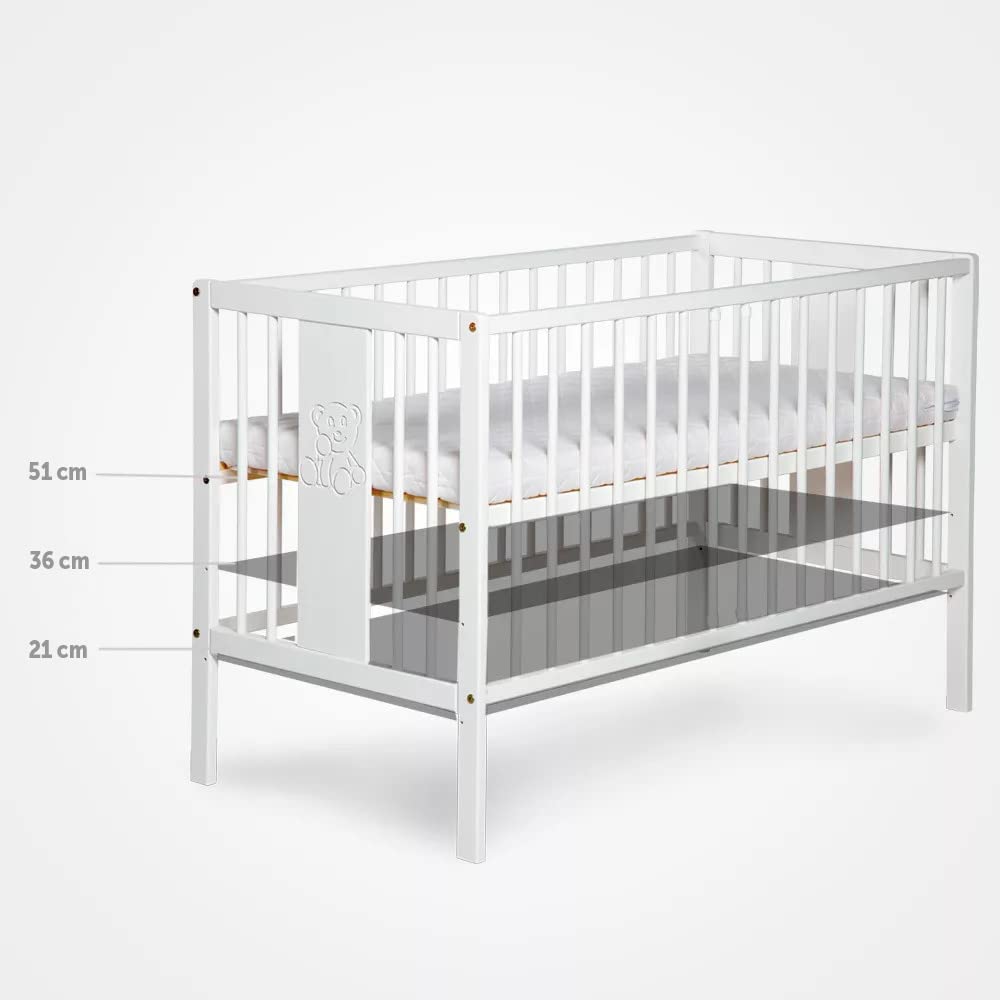 KMbaby TANY Babybett Gitterbett – Weiss 120x60cm mit Matratze