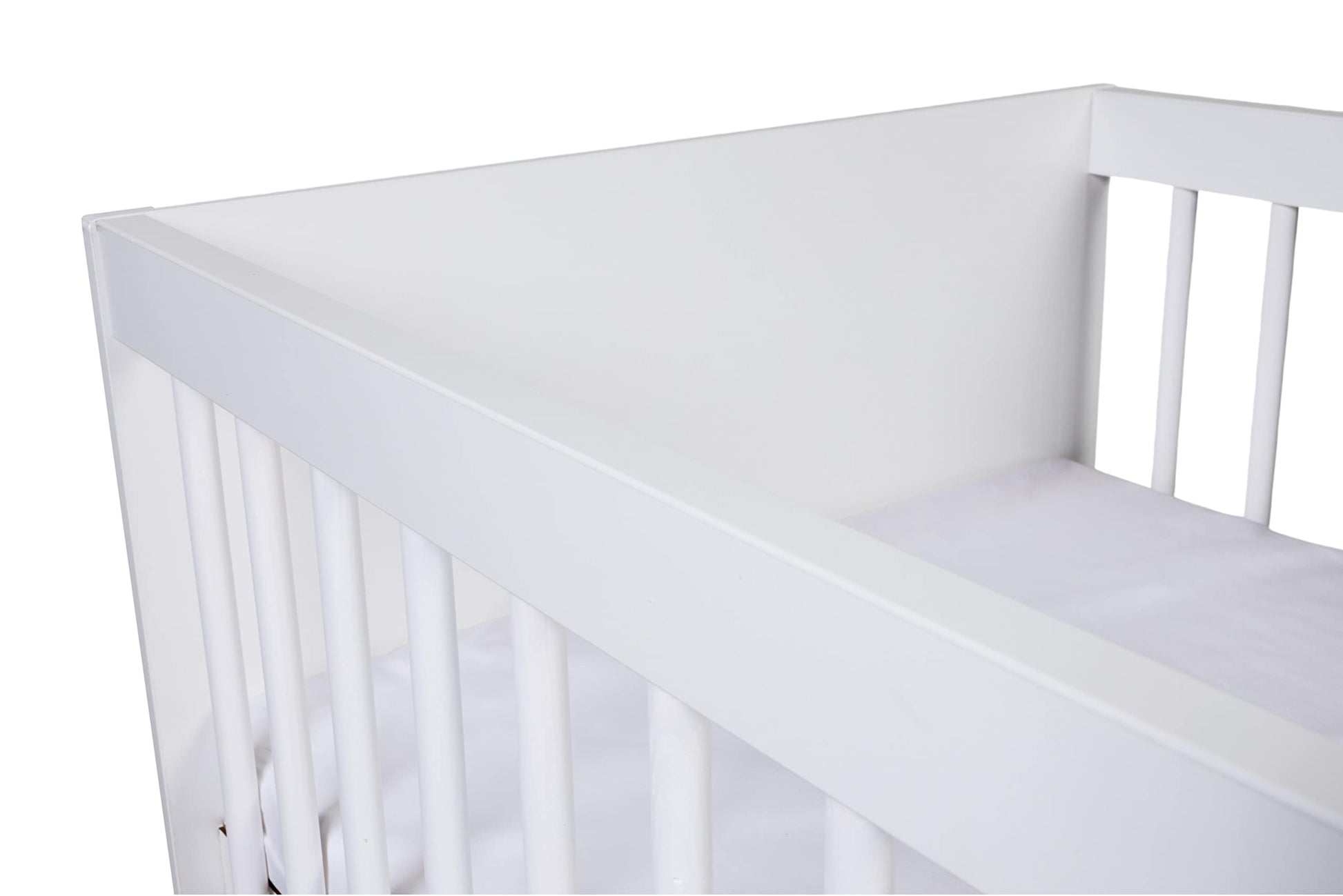 - Sichere Gitterstäbe: Die Abstände zwischen den Sprossen sind so bemessen, dass der Kopf Ihres Kindes nicht hindurchpasst.