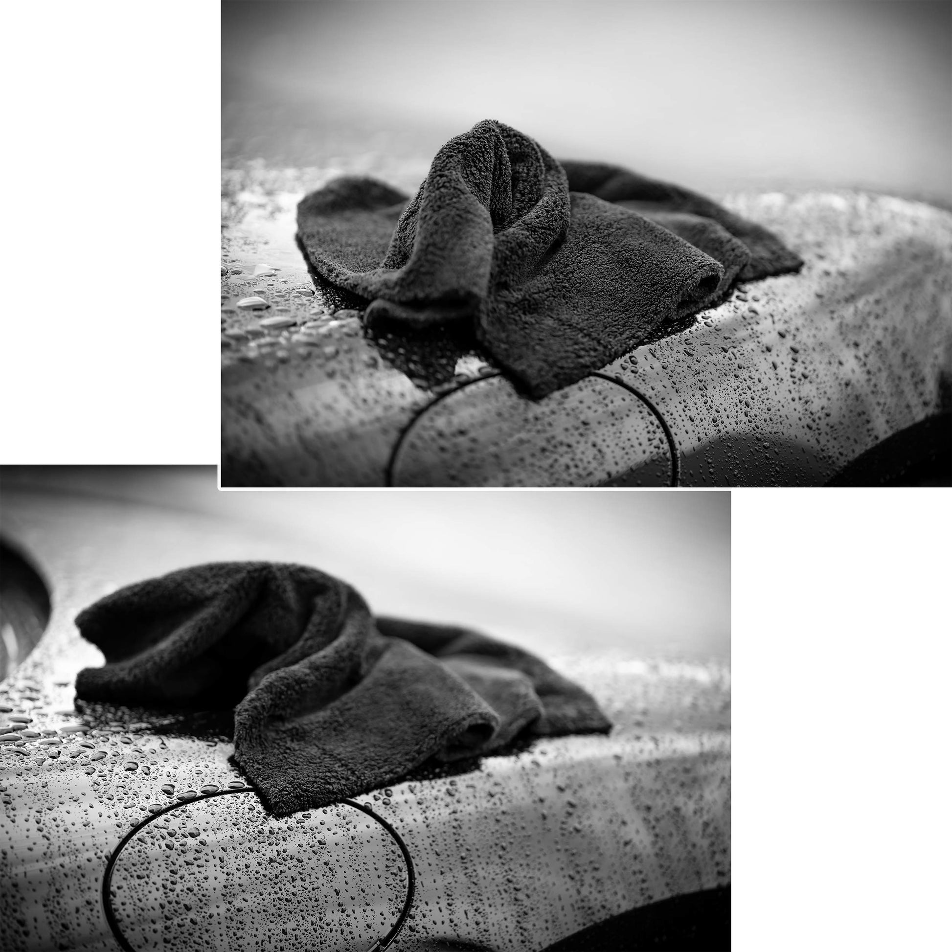 Die beiden mitgelieferten Mikrofasertücher ermöglichen ein absolut kratzfreies Arbeiten beim Abtragen von Politurrückständen. Ihr randloses Design und das hohe Flächengewicht von 550GSM garantieren eine schonende und effektive Reinigung.