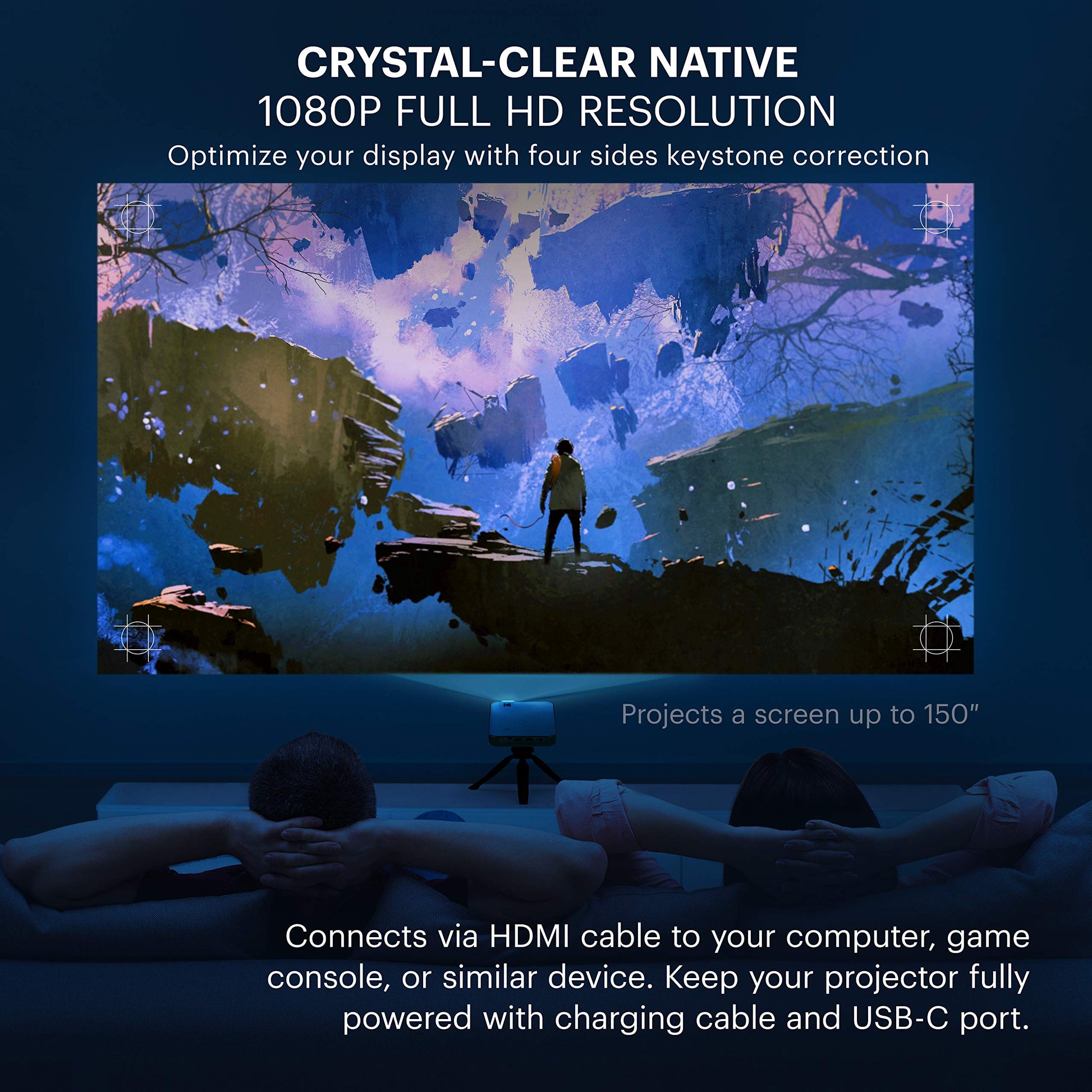 - Kompakt und mobil: Das Design im Taschenformat, der leise Betrieb und die mitgelieferte Fernbedienung machen den Projektor zum perfekten Begleiter für Filmabende, Präsentationen oder Gaming – zu Hause und unterwegs.
