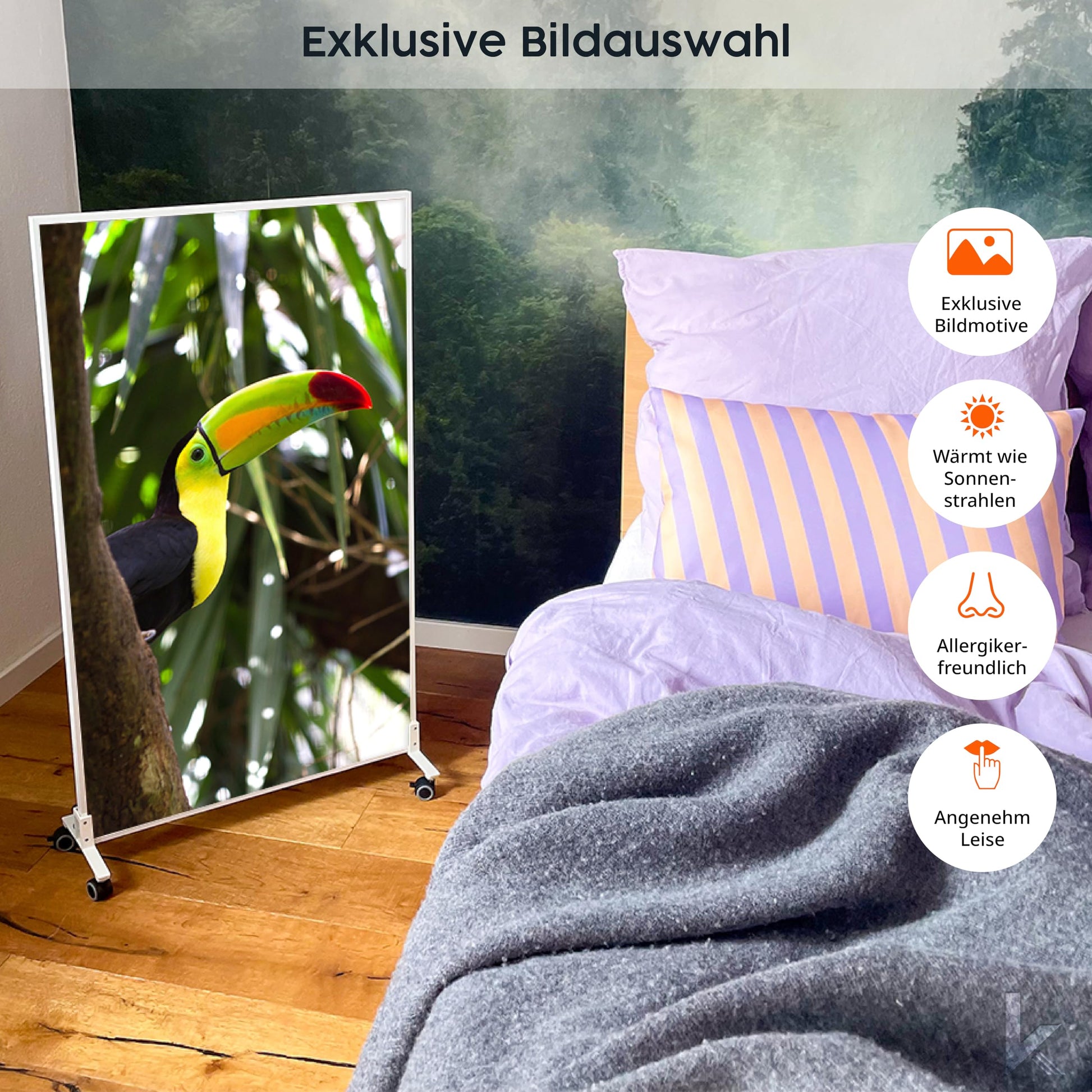 Diese mobile Bild-Infrarotheizung vereint wohlige Wärme mit einem stimmungsvollen Design. Das Motiv eines Lagerfeuers macht sie zu einem echten Blickfang und sorgt gleichzeitig für eine angenehme Atmosphäre in Ihren Räumen.