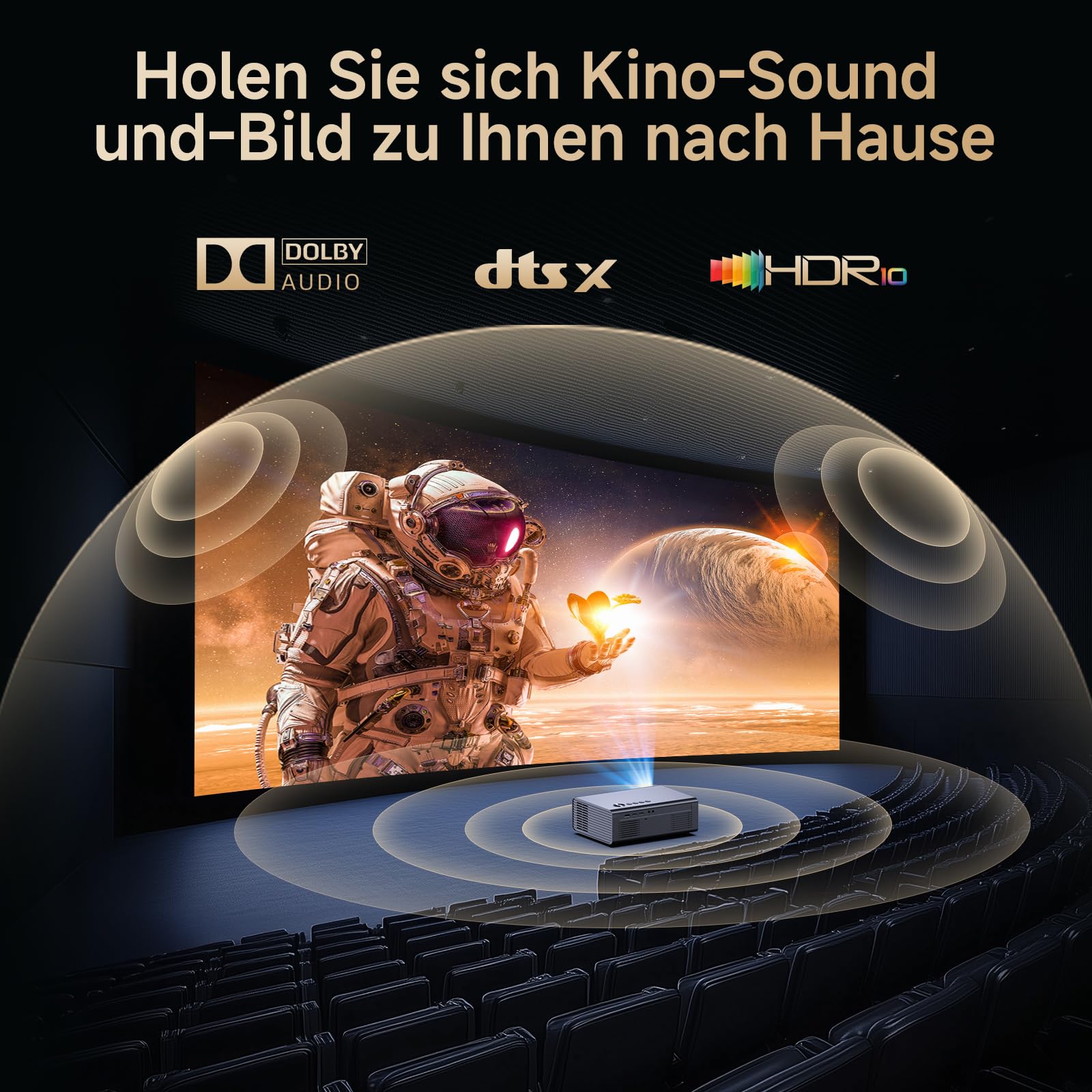 Erleben Sie ultimatives Entertainment ganz ohne zusätzliche Geräte. Dank der integrierten Streaming-Dienste und dem App-Store starten Sie Ihre Lieblingsfilme und -serien direkt über den Beamer – ein TV-Stick wird überflüssig. Der DTS-kompatible Sound sorgt dabei für ein packendes Klangerlebnis, das Sie mitten ins Geschehen versetzt und Filmabende oder Gaming-Sessions unvergesslich macht.