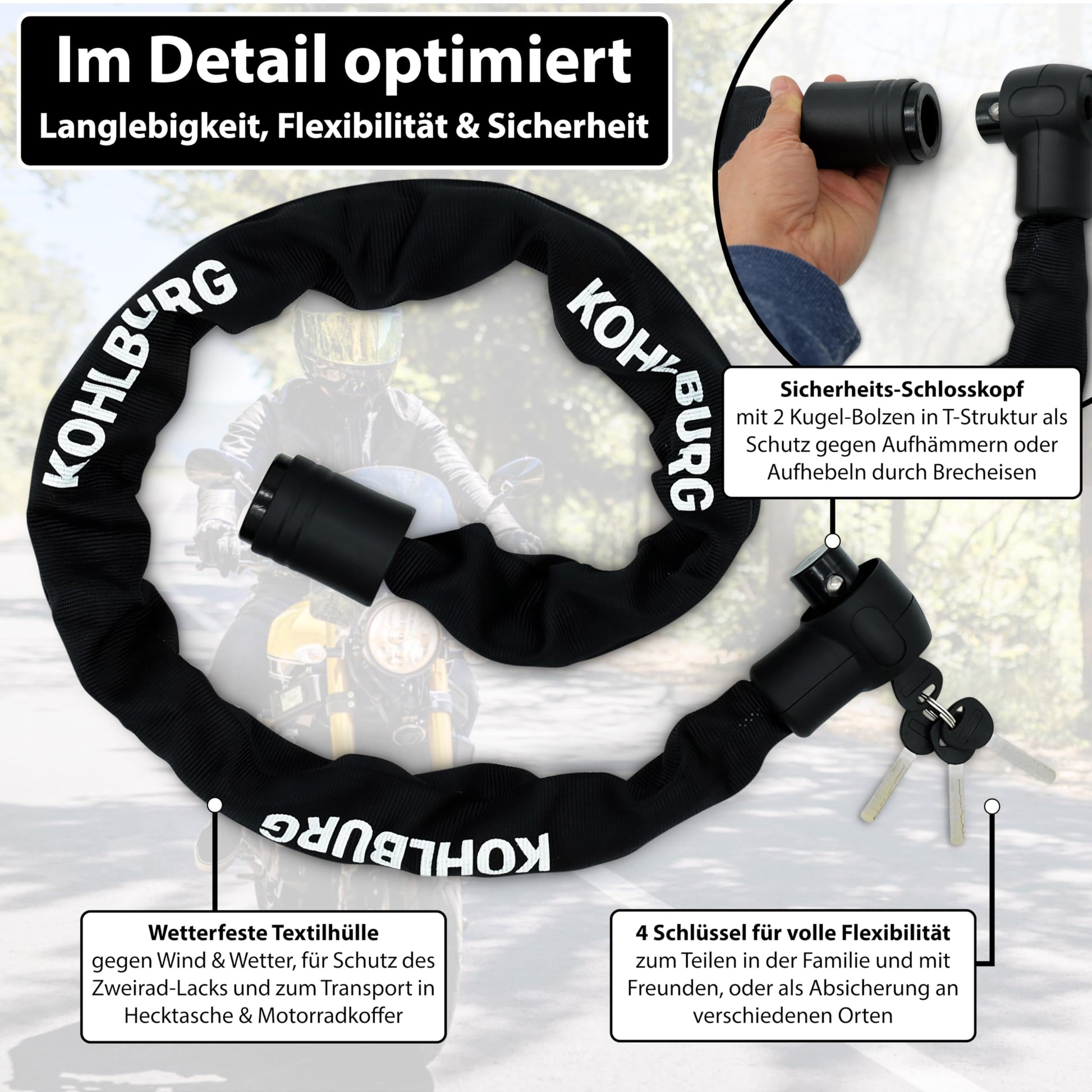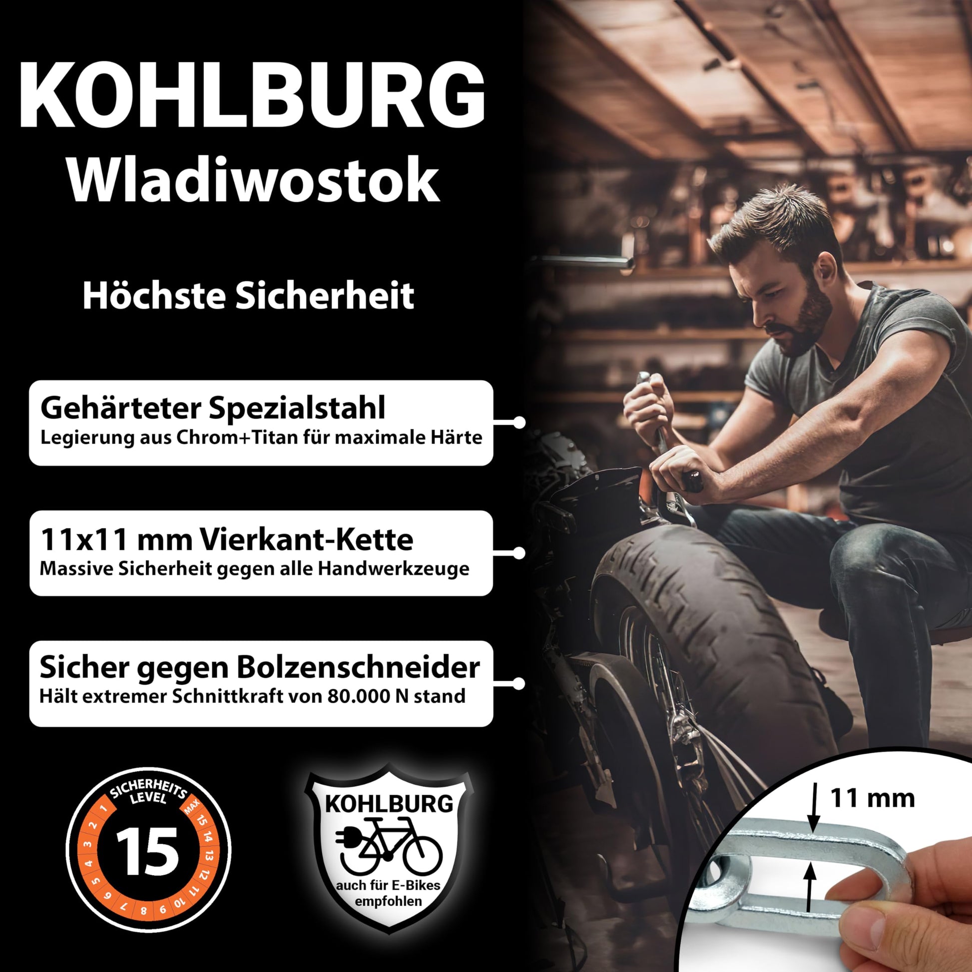 KOHLBURG Kettenschloss – 125cm Bolzenschneider-sicher Level 15