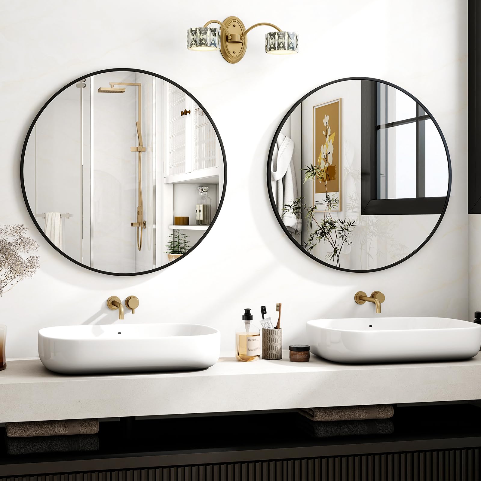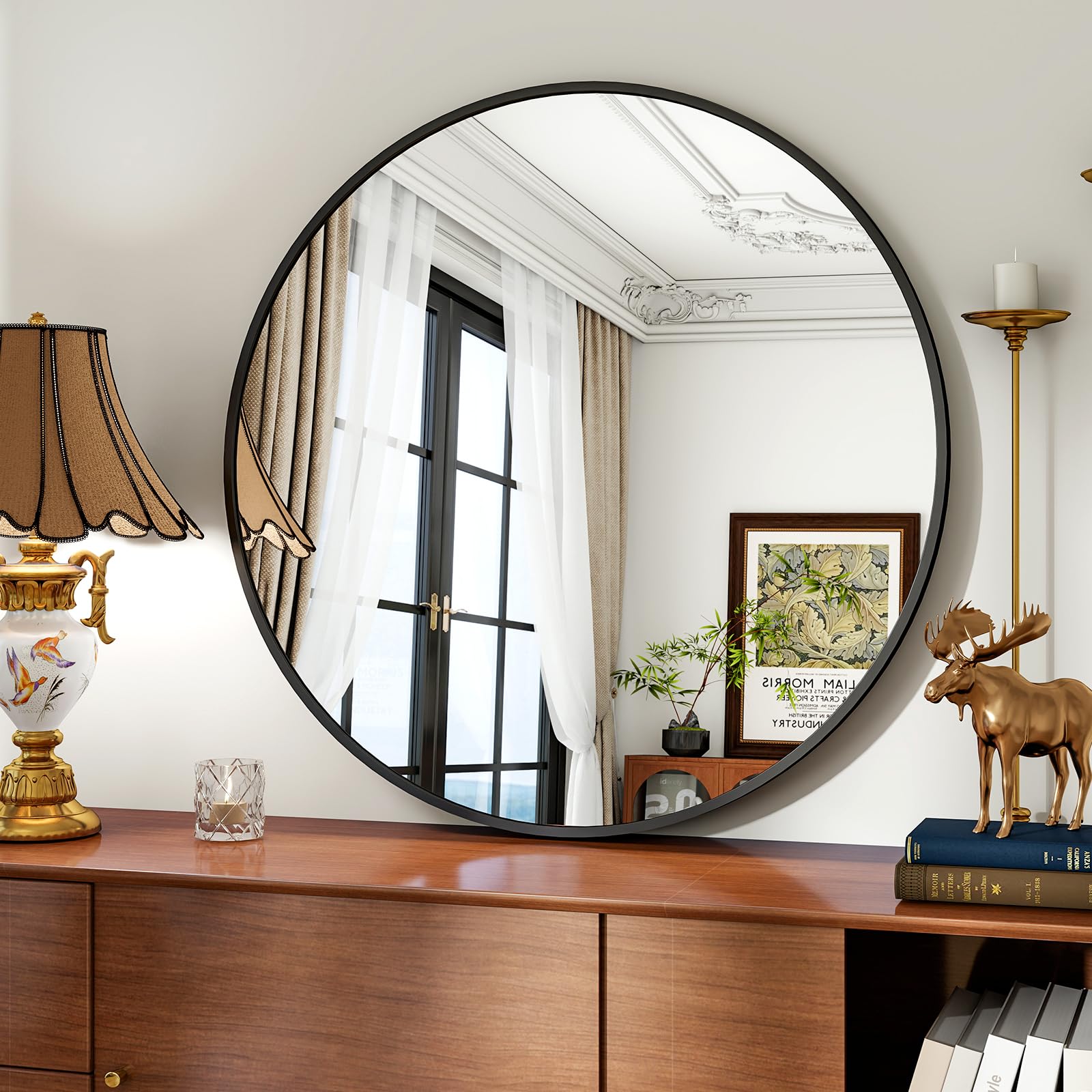 Ob über dem Waschtisch im Badezimmer, als Blickfang im Wohnzimmer oder als praktischer Helfer im Eingangsbereich – sein zeitloses, rundes Design harmoniert perfekt mit verschiedensten Einrichtungsstilen und setzt einen eleganten Akzent. Auch auf einem Kamin oder einer Kommode platziert, wird er zu einem geschmackvollen Blickfang.