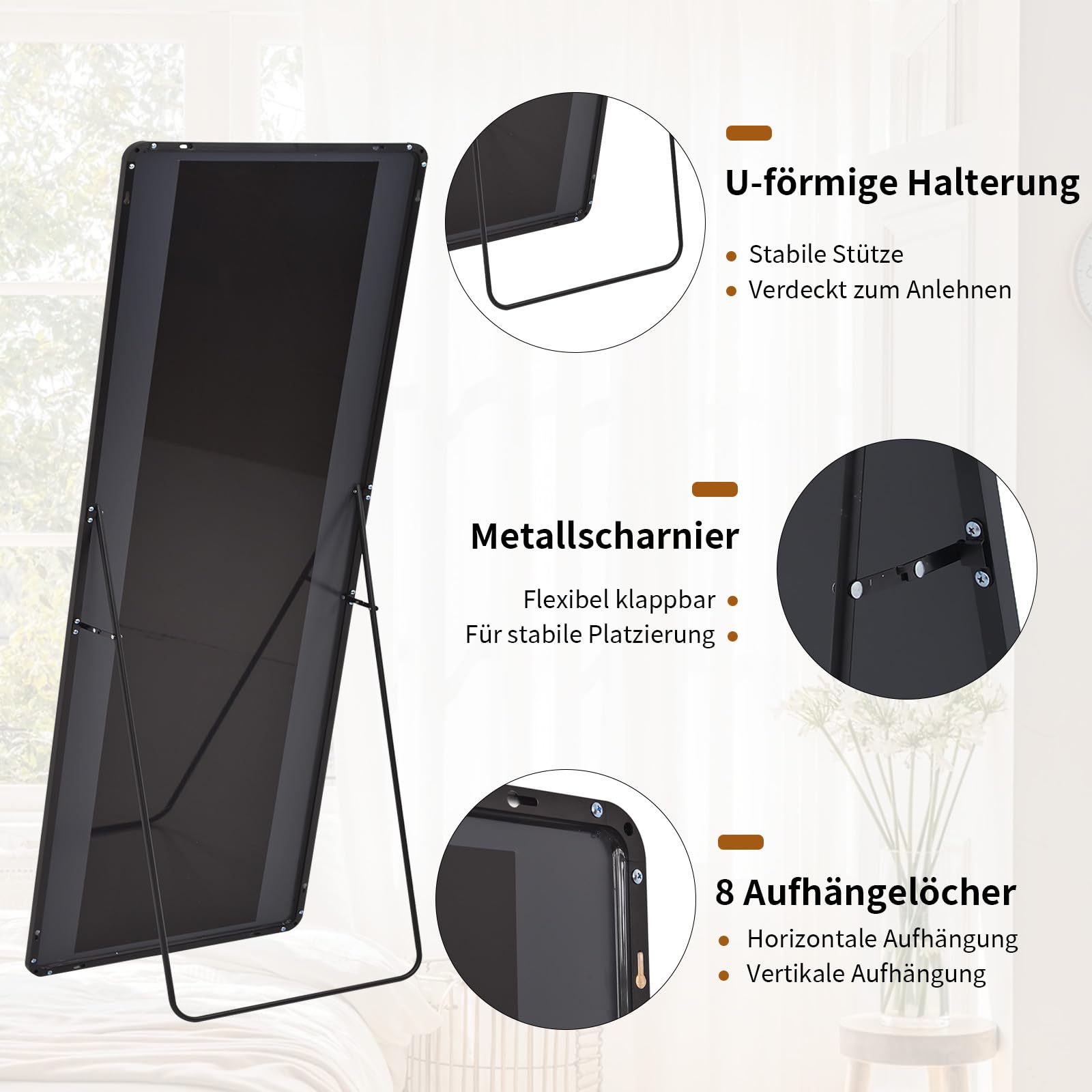 Koonmi Standspiegel Ganzkörper – Abgerundet 53x163 cm Schwarz