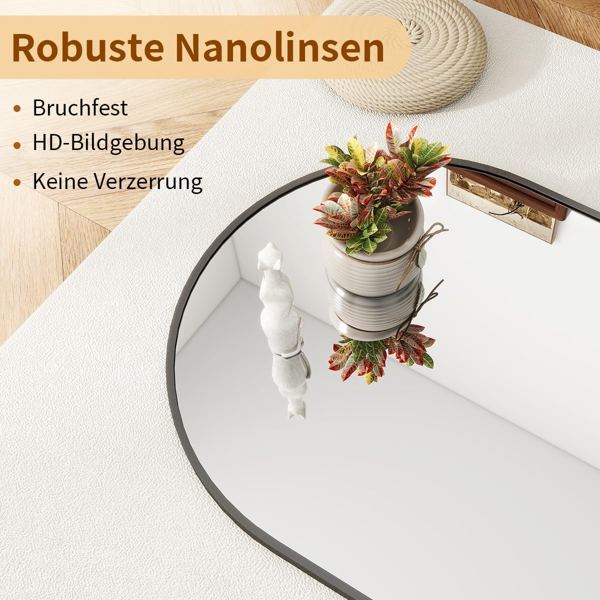 Verzerrt der Spiegel das Spiegelbild und wie robust ist er?
