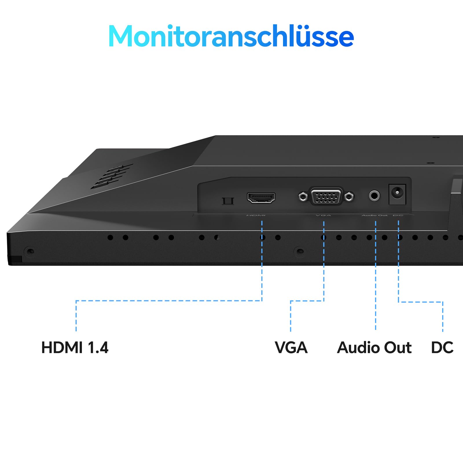Der Monitor verfügt über einen HDMI-1.4-Anschluss, einen VGA-Anschluss sowie einen Audio-Ausgang für externe Lautsprecher oder Kopfhörer. Im Lieferumfang sind üblicherweise ein Netzkabel und ein HDMI-Kabel enthalten, sodass Sie sofort loslegen können.