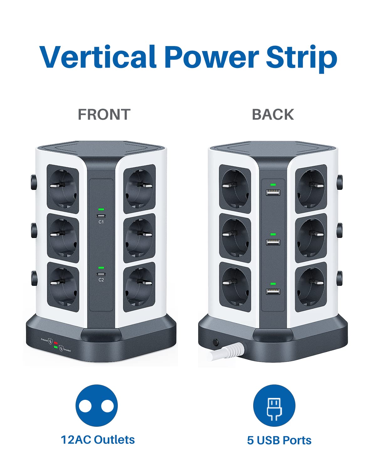 - Maximale Konnektivität: Versorgt bis zu 17 Geräte gleichzeitig über 12 Steckdosen, 3 USB-A- und 2 USB-C-Anschlüsse.