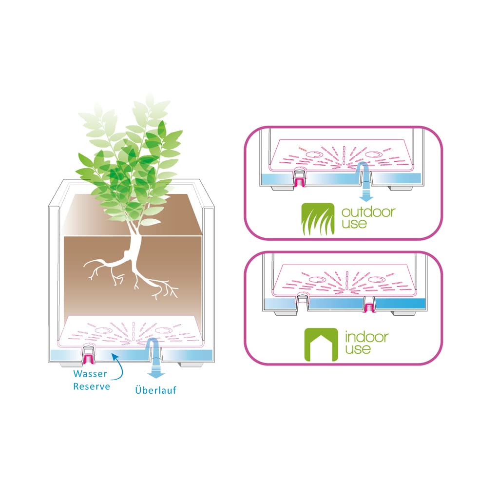 Integrierte Entwässerungslöcher im Boden verhindern wirksam Staunässe, was die Gesundheit Ihrer Pflanzen schützt. Dadurch eignet sich das Gefäss ideal für den Einsatz im Freien, kann aber auch in Innenräumen verwendet werden.