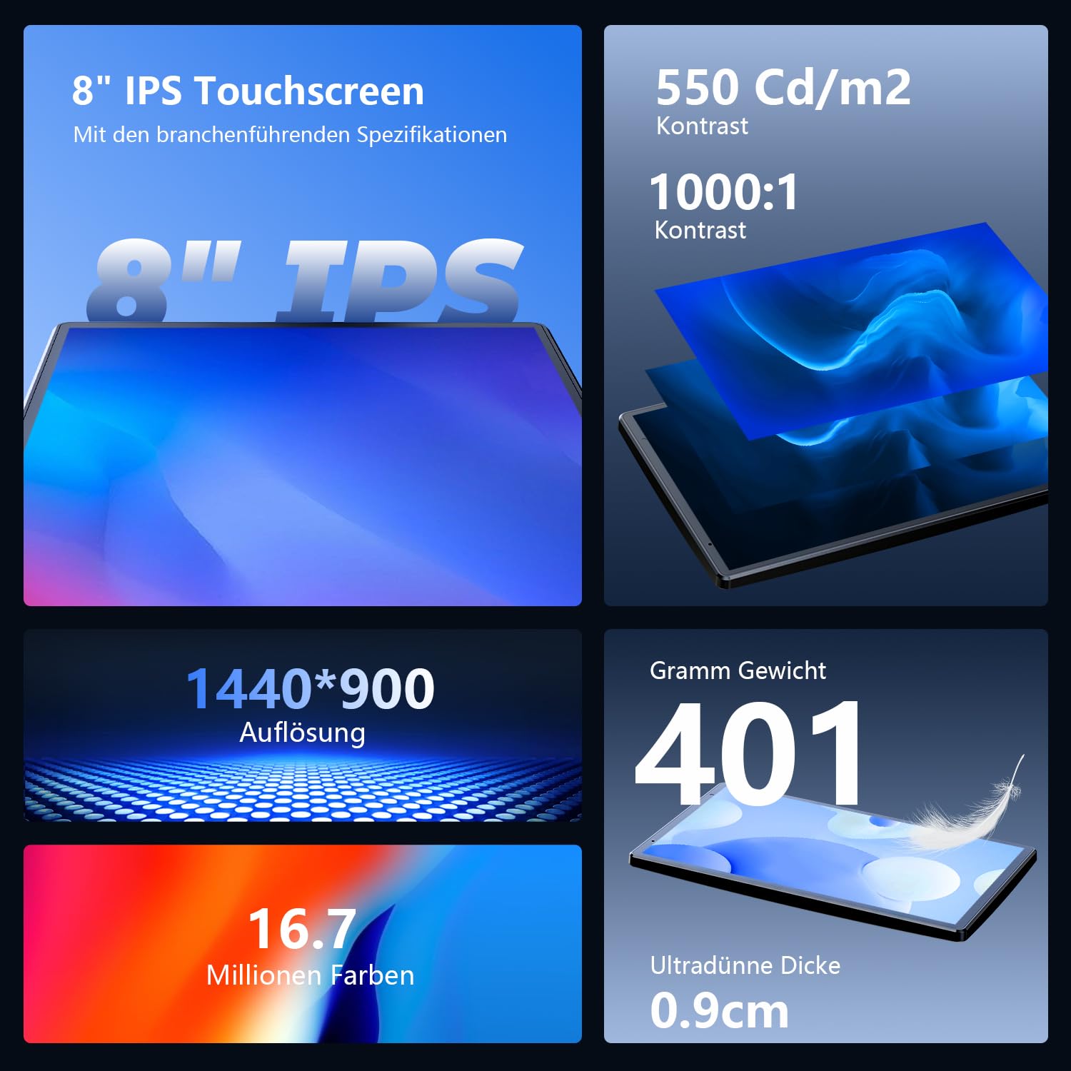 - Herausragende Display-Qualität: Der 8-Zoll-IPS-Touchscreen überzeugt mit 16,7 Millionen Farben, einer Helligkeit von 550cd/m² und einem Kontrast von 1000:1, was auch bei direkter Sonneneinstrahlung für perfekte Lesbarkeit sorgt.